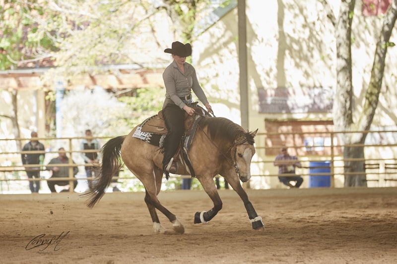 Yegua de raza Quarter Horse, caballo de casco, color buckskin, nacido en abril de 2021