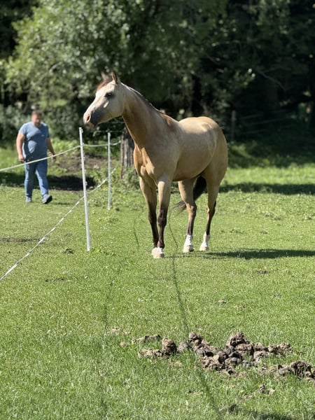 Geboren in 2021, Quarter Horse hengst. Absoluut ontspannen, zowel tijdens training als in omgang. Goede reining-opleiding. "Johnny" staat onder professionele begeleiding bij Valentina Sagmeister. Locatie: 2700 Wenen-Neustadt