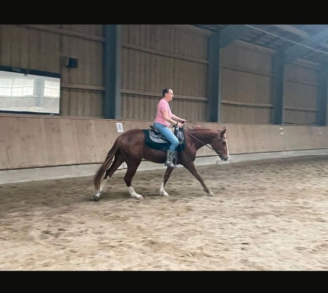 Wir suchen für unseren Wallach NP Mr Big Sunburst geboren 2021, von uns einfach Big genannt, ein neues Zuhause. Big ist ein sehr lieber und menschenbezogener, unverbrauchter Quarter Horse Wallach in der Farbe Sorrel mit einem Stockmaß von 1,51. Er liebt die gemeinsame Zeit mit Menschen und ist im Umgang sehr brav. Abstammung: Big Chex on the Cash x Dada Life Sunburst (Great Sunburst) Er war 6 Monate bei Maarten de Gouw im Beritt. Hier zeichnete er sich durch seinen unkomplizierten, ruhigen Charakter und sehr schönen Bewegungen aus. Seine Grundgangarten sind sehr sitzbequem. Das Reiten im Gelände kennt er noch nicht. Erste Spaziergänge im Gelände mit anderen Pferden hat er ganz entspannt gemeistert. Big kennt die Haltung in der Box sowie im Offenstall. Aktuell lebt er in einer Herdenhaltung mit Box in der Nacht. Big ist gesund und wurde regelmäßig entwurmt und geimpft. Dem Hufschmied wird er selbstverständlich regelmäßig vorgestellt. Der 5-Panel Test ist N/N