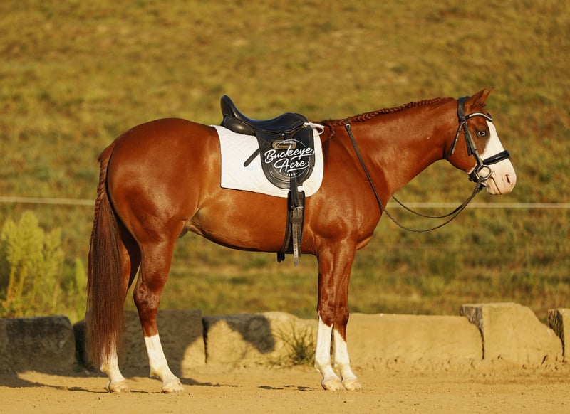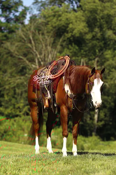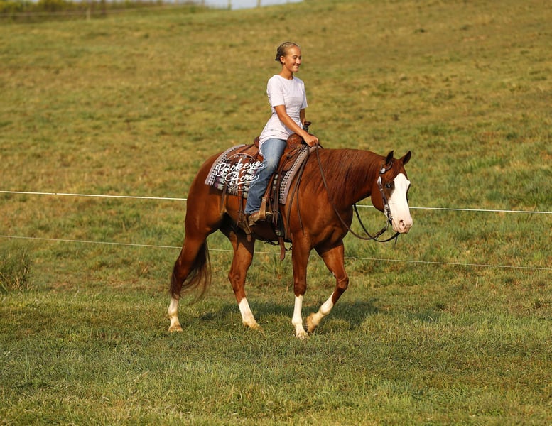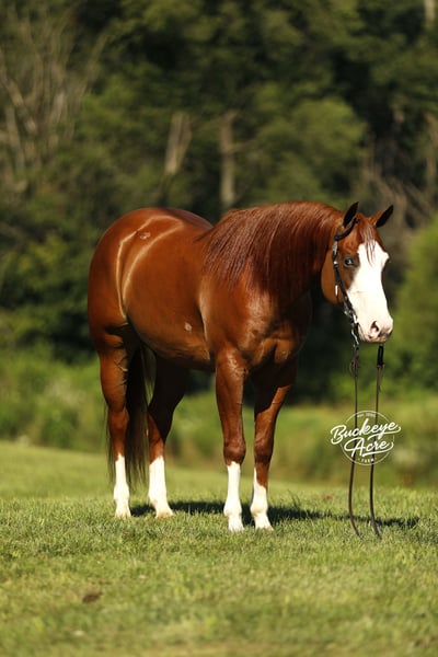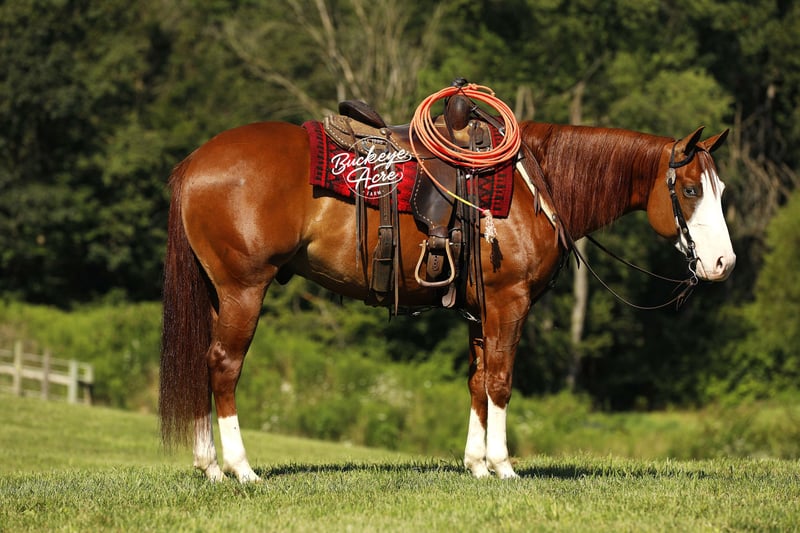Are you looking for that all-in-one versatile family horse? We think Sunrise could be the one. This 2020 sorrel gelding stands at a near-perfect 15 hands, dressed in four white socks and a bald face that makes him absolutely unforgettable. His sharp conformation and athletic build are paired with a kind, gentle eye and a presence that always turns heads. From his looks to his breeding to his personality, Sunrise truly has it all. Sunrise is every bit as enjoyable to be around as he is to ride. He is a gentleman in every sense of the word, whether in the barn or out in the pasture, always meeting you at the gate with a bright expression and eager for scratches and attention. He is steady, patient, and safe, making him a horse that can be enjoyed by riders of all levels. From kids just starting out, to seniors wanting a dependable trail partner, to advanced riders looking for a horse with ability and buttons, Sunrise adjusts to his rider and gives his all. This gelding has been ridden safely on state roads in traffic, has spent countless hours on the trails, and takes on any terrain you point him toward. He will cross water, step over logs, and handle steep hills going up or down with confidence. His smooth, easy gaits—from walk to extended trot to lope—are comfortable enough to enjoy all day long. He knows his leads, carries a soft one-hand neck rein, performs lead changes, and has been used to check cows and fence lines. He is well desensitized to tarps, jugs, whips, and even gunshots, making him steady and dependable in nearly any situation. Best of all, Sunrise does not need to be kept in a steady program to remain your trusted partner. Adding to all this is his outstanding pedigree. Sunrise is an own son of Electric Snow, whose offspring have earned over $480,000, and his lineage goes back to the Hall of Fame sire Shining Spark. On the dam’s side, he traces to the legendary Smart Chic Olena, another Hall of Fame horse. With this foundation, Sunrise has the ability and talent to take into the show pen, yet he is quiet and dependable enough to be enjoyed by kids and grandkids on a weekend trail ride. That kind of versatility is hard to find. Our own children have ridden him all over the farm, and Sunrise enjoyed every minute with them. He is good in the wash bay, stands quietly for the farrier, and is up to date on dental care, vaccinations, and deworming. From his looks, his pedigree, his training, and his willing-to-please personality, Sunrise is a horse that can fit a wide variety of needs. You could show him one day, hit the trails the next, and trust him with the kids the day after that. If you have been searching for a horse that truly checks every box, Sunrise could fit the bill. For more information or to schedule a day to meet him in person, contact Duane at 330-231-2324.
