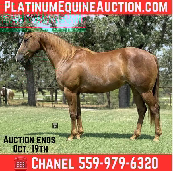 ONLINE AUCTION Place your bids at www.PlatinumEquineAuction.com Starting Bid $3500 Auction ends October 19th, 2025 Need a new saddle? Check out White Rock Saddles on our website or Facebook Wimpys Royal Chic aka Mia is a beautifully made, royally bred, and absolutely safe and gentle 5 year old AQHA mare. She is the perfect size standing 15 hands with a ton of bone/muscle to her. Her pedigree includes Wimpys Little Step, Nu Chex To Cash, Smart Chic Olena, and Chics Beduino. She is the perfect cross of cow and run. Mia has an extensive resume of trail riding and being out on the ranch. She has beautiful circles and transitions in the arena. She has a great neck rein on her and is extremely user friendly. Mia is suitable for any and all levels of riders - including youth. She is quiet, gentle, calm and sensible in every single way. Mia takes to new things with ease and has an amazing mind to her. She has the athletic ability to make a fancy performance horse but absolutely loves just going for leisurely rides as well. She is great to be around and is very well mannered. Hauls, ties, shoes, pastures and stalls exceptionally. Mia is sound and straight legged. She is friendly and enjoys attention and going to do things. FMI call/text Chanel with Holland Horse Company 559-978-6320. We are happy to answer any questions, schedule a test ride, or help arrange shipping nationwide! Located in Jacksboro, TX. ONLINE AUCTION Place your bids at www.PlatinumEquineAuction.com Starting Bid $3500 Auction ends October 19th, 2025 Need a new saddle? Check out White Rock Saddles on our website or Facebook