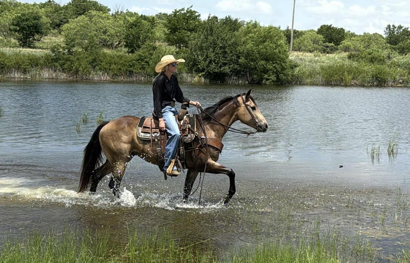 ONLINE AUCTION Place your bids at www.PlatinumEquineAuction.com Starting Bid $3500 Auction ends July 6 2025 Need a new saddle? Check out White Rock Saddles on our website or Facebook! Codys Smooth Banjo aka Banjo is a beautiful 2021 model sooty buckskin standing 15 hands tall. Banjo has done a little bit of everything! His resume includes ranch work, roping, trail riding, town riding and jumping. Banjo is a gentle and kind gelding that could go any direction someone wants to take him. He is very athletic and has speed and agility and also laid back and unbothered by things which makes him great out on the trails. Banjo has passed all of our criteria from saddling up gentle, even with time off, to going over and through anything we ask of him, to putting in a full days work. He is good on the ground, easy to catch, good with his feet, and does well alone or with others. He hauls easily and is the same horse in new places as he is at home. He is smooth and easy to navigate. Banjo is sound, straight and clean legged. FMI call/text Chanel 559-978-6320 with Holland Horse Company. We are happy to answer any questions and help arrange shipping nationwide! ONLINE AUCTION Place your bids at www.PlatinumEquineAuction.com Starting Bid $3500 Auction ends July 6 2025 Need a new saddle? Check out White Rock Saddles on our website or Facebook!