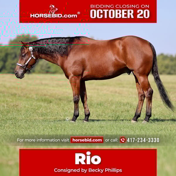 ♦️ 𝐭𝐡𝐞 𝐀𝐌𝐄𝐑𝐈𝐂𝐀𝐍 𝓕𝓪𝓵𝓵 𝓒𝓵𝓪𝓼𝓼𝓲𝓬 ♦️ Happening now thru MONDAY | OCTOBER 20th - Available EXCLUSIVELY on HorseBid's website! For more details and to register visit: www.Horsebid.com CONSIGNOR CONTACT: Becky Phillips 417-234-3330 LOCATION: Elkland, MO BREED: Quarter Horse REGISTERED: Yes REGISTERED NAME: A Surprise Chec COLOR: Bay HEIGHT: 15 AGE: 5 GENDER: Gelding 🌟 Rio is by Pretty Peppy Chec out of Hang Ten Susie🌟 Rio is a 5-year-old gelding with a heart of gold and the talent to match. He’s been shown in AQHA and VRH, placing well and earning great scores — he marked a 70 at his last reining show too! This handsome guy has all the reining maneuvers down pat – spins, stops, rollbacks, lead changes – he does it all. Out on the trail, Rio is fun galloping through the pastures checking cattle would be his jam!He’s got more whoa than go, making him a joy to ride for riders of all levels. Rio has also been around cattle, and he shows a real interest — he’d likely excel in ranch versatility or roping with a bit more exposure. You can throw a rope off him, drag logs, and trust him to stay quiet and willing every step of the way. Beyond his skills, Rio’s personality truly shines. He’s kind, easygoing, and loves attention — especially from kids. The kind of horse you can enjoy both in and out of the show pen. ✅ AQHA/VRH show experience ✅ Scored a 70 in reining ✅ Trail rides, drags logs, ropes quietly ✅ Great mind, easy to handle, kid-friendly ✅ 5 years old – the perfect age to go on and do anything Located in Elkland Mo Contact Becky Phillips for more info or to come try him out! 417-234-3330
