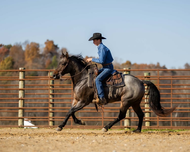 ⚜️ 𝓽𝓱𝓮 𝐇𝐨𝐫𝐬𝐞𝐦𝐚𝐧'𝐬 𝓢𝓱𝓸𝔀𝓬𝓪𝓼𝓮⚜️ Happening now thru MONDAY | DECEMBER 1st - Available EXCLUSIVELY on HorseBid's website! For more details and to register visit: www.Horsebid.com CONSIGNOR CONTACT: Jamie Thomason 270-772-1706 LOCATION: Auburn, KY BREED: AQHA REGISTERED: Yes REGISTERED NAME: DJ VALENTINE BLU MAN COLOR: Bay Roan HEIGHT: 15 AGE: 5 GENDER: Gelding Show-stopping presence and stunning good looks, he is as eye-catching as he is capable. Jericho is a 5 yr old, AQHA, Bay Roan gelding, standing at a comfortable 15 hands. Seasoned on the trail and confident in the arena, Jericho brings true versatility, athleticism, and a bright, willing mind to every ride, making him a standout partner for all your adventures! Jericho has been my personal partner on the trail. He’s sure-footed, calm, and confident. Travels through creeks, up and down inclines, down winding paths, over rocky terrain, and even navigating his own path through thick underbrush when normal paths were impassable, he handles it all with patience and a steady step. Jericho will ride away from the group or stand patiently as others ride away. He is unbothered when other riders pick up the pace in front of him, never changes speed unless asked. He stands patiently for mounting and waits until you ask him to ride off. He’s been very enjoyable to bring along with friends on weekend rides. Jericho is confident in the arena. A fun, forward ride, he travels both directions on the correct lead, moves laterally, transitions smoothly, and has a nice stop. He has been lightly started over cross rails. He’s a natural! Has plenty of scope & the willingness to pursue stadium jumping with a confident rider. On the farm, Jericho has helped us gather cattle alongside stock dogs. Opens & closes gates. He’s unbothered by UTV/ATV’s, large farm equipment, and is comfortable around other livestock. Jericho is an easy to own horse. He has impeccable stall manners, always neat & tidy. Also perfectly content living outside. He turns out in a mixed herd, no issues & is easy to catch. A gentleman to load & haul. Fun, versatile, and always ready for an adventure, Jericho is the kind of partner who rises to every occasion. Whether you’re searching for a trusted trail companion or an enjoyable arena horse, Jericho is the one! If you would like to meet Jericho or have any other questions prior to adding him to your family, feel free to reach out! PPE’s welcome! We can assist in arranging shipping to anywhere! Contact Jamie @ 270-772-1706 Located in Auburn, KY