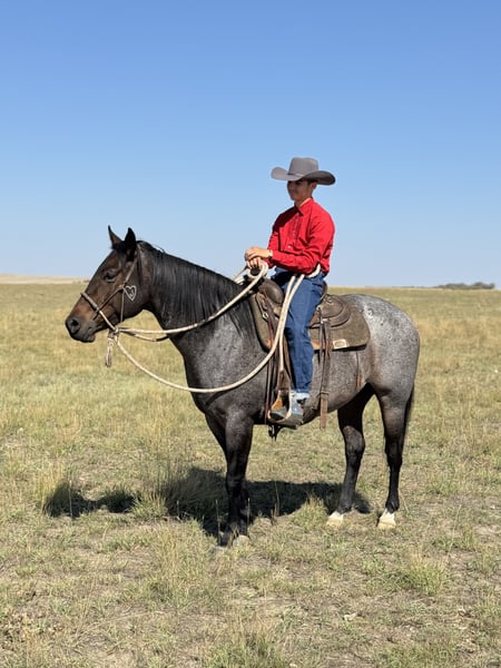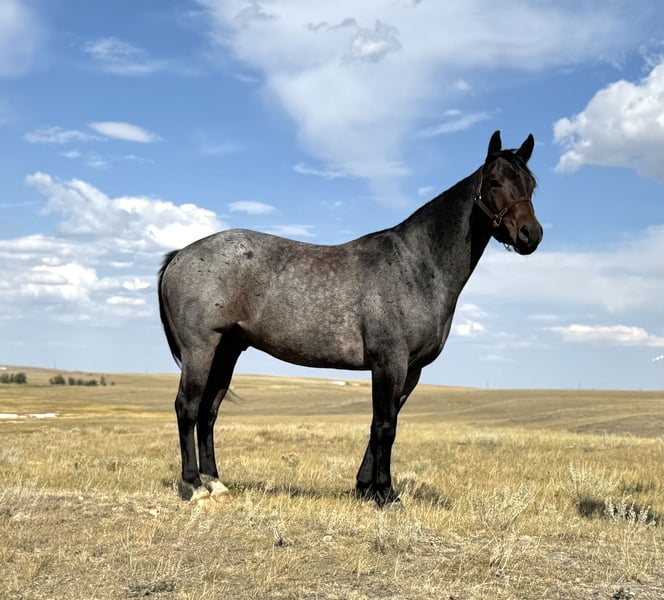 🍂 𝓐𝓾𝓽𝓾𝓶𝓷 𝑨𝑳𝑳 𝑺𝑻𝑨𝑹 𝑳𝑰𝑵𝑬𝑼𝑷 🍂 Happening now thru MONDAY | OCTOBER 6th - Available EXCLUSIVELY on HorseBid's website! For more details and to register visit: www.Horsebid.com CONSIGNOR CONTACT: Jeremy James 406-781-2227 LOCATION: Power, MT BREED: Quarter horse REGISTERED: Yes REGISTERED NAME: ROLLING POCO ROCCO COLOR: Bay roan HEIGHT: 15 AGE: 4 GENDER: Gelding ROLLING POCO ROCCO Meet Rocco. He is a 2021 AQHA gelding standing at 15 hands. This stout flashy fella is calm minded and very patient. He is perfect for beginners, fun for intermediate riders and solid for advanced riders. Rocco is ranch raised and has been around cattle his whole life. He moves cattle or horses on a regular basis. He knows his job when he gets into a branding pen, his presence is steady in the stressful environment. He does well for young learners as he is very patient. Not much upsets Rocco. He makes a great horse for lessons with the right balance of whoa and go if you are unsure of your riding abilities. He is great at boosting the confidence of any rider. Rocco does not hesitate with any challenge given to him. He crosses water easily and adapts to any terrain in front of him. You can open and close gates off of him, side pass with ease and he has perfect manners on the ground. Rocco is easy to catch, very gentle, stands quiet for saddling, mounting and he is excellent for the farrier. He is a gentleman to load, unload backing out and haul in the trailer. He doesn’t bat an eye having to work on his own, and he works well around other horses. Rocco is eager to please and has an honest heart. He will make a fantastic addition to any family! Rocco is located in Power, Montana - we are happy to help get you in contact with transportation for across the country. For more information call Melissa James at 406-781-2227