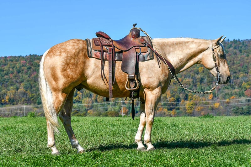 ⚜️𝐓𝐇𝐄 𝐅𝐀𝐋𝐋 𝐇𝐄𝐑𝐈𝐓𝐀𝐆𝐄 𝐂𝐋𝐀𝐒𝐒𝐈𝐂⚜️ Happening now thru MONDAY | NOVEMBER 3rd - Available EXCLUSIVELY on HorseBid's website! For more details and to register visit: www.Horsebid.com CONSIGNOR CONTACT: Marlis Farms 814-777-0607 LOCATION: Rebersburg, PA BREED: AQHA REGISTERED: Yes REGISTERED NAME: PLAYGUNS REVOLUTION COLOR: Palomino HEIGHT: 15 AGE: 4 GENDER: Gelding “PLAYGUNS REVOLUTION” aka “Rebel” is a 2021 model (4 year old) AQHA gelding standing at 15 hands tall. This is an exceptionally well bred gelding and own grandson of “Einsteins Revolution” a 2.4 million dollar sire with lifetime earnings over 350k! “Rebel” is a barn favorite here, he is beautiful, classy, well broke and gentle! Rebel rides English, western and bareback. He has very smooth, comfortable gaits with easy transitions. Rebel is very soft in the face, will frame up nicely, he neck reins, side passes and will even lay down on command! He will ride indoors or out and loves to trail ride! Rebel has ridden downtown and is traffic safe! He is use to loud heavy equipment around the farm. On the trail he will step over logs, cross water, bridges, railroad tracks etc! He is a very level headed gelding that always aims to please! Rebel is an easy keeper at home with no complaints! He is happy in a stall or can be turned out in a mixed herd. He is well mannered for all the normal barn tasks, vet, farrier, dentist etc! He stands to be groomed, bathed, clipped, tacked up and mounted! Rebel loads and hauls like a dream and is always the same, well mannered gentleman whenever we go! If you think Rebel is the one for you, please feel free to reach out or schedule a visit to come meet us! Call Mark @ 814-777-0607