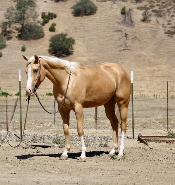 ONLINE AUCTION Place your bids at www.PlatinumEquineAuction.com Starting Bid $3500 Auction ends June 22nd, 2025 Need a new saddle? Check out White Rock Saddles on our website or Facebook! Your Dream Golden Palomino Mare Awaits. If you’ve been searching for a horse that combines beauty, brains, and talent, your search ends here. Meet Ariana,a spectacular golden palomino mare standing at 15 hands and only 4 years old. This isn’t just a pretty horse; she’s a dream to ride, possessing the cool demeanor and training of a seasoned reiner. Ariana is responsive and graceful, bending at the poll and moving her hips and sides with subtle leg cues. She executes smooth turnarounds and slides with ease, making her a standout in the arena. She picks up all her gaits with fluidity and class, loping perfect circles and transitioning seamlessly. Beyond her training, Ariana is a friendly horse, always eager to greet you with a gentle nuzzle. Her versatility extends beyond the arena. Ariana has a natural affinity for cows and has been started on lead steer, showing great promise. She’s been actively used to gather and sort cattle, proving to be a reliable and enjoyable partner. On the trails, Ariana is equally confident, navigating narrow paths, water crossings, and encounters with wildlife with remarkable composure. Ariana safe and reliable nature makes her suitable for a wide range of riders and disciplines. She has confidently tackled obstacles, including bridges, tires, and flags. She’s unfazed by farm equipment like tractors, four-wheelers, and quads, and is safe to ride down the road. This mare is a true pleasure to ride, saddling up with ease, standing patiently when tied, and behaving impeccably for the farrier and vet. She hauls well and adapts quickly to new environments. If you’re longing for your next best friend and equine partner, Arana is the one. Contact Longhorn Ranch, Dina at 831-537-1915, located in Paicines, CA, to schedule a visit and experience the magic of Ariana firsthand. ONLINE AUCTION Place your bids at www.PlatinumEquineAuction.com Starting Bid $3500 Auction ends June 22nd, 2025 Need a new saddle? Check out White Rock Saddles on our website or Facebook!