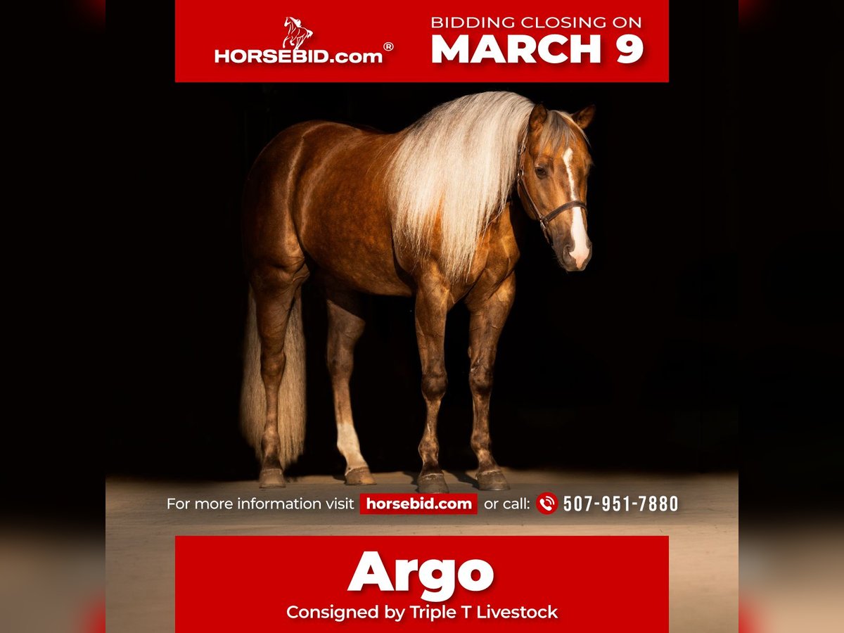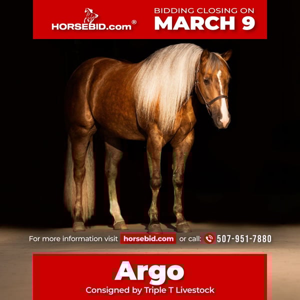 ℳ𝒶𝓇𝒸𝒽 ♦️𝐑𝐈𝐃𝐄𝐑'𝐒 𝐂𝐇𝐎𝐈𝐂𝐄♦️ Happening now thru MONDAY | MARCH 9th - Available EXCLUSIVELY on HorseBid's website! For more details and to register visit: www.Horsebid.com CONSIGNOR CONTACT: Triple T Livestock 507-951-7880 LOCATION: Aguila, AZ BREED: AQHA REGISTERED: Yes REGISTERED NAME: GUNNA GETYA CHEX COLOR: Chocolate Palomino HEIGHT: 15 AGE: 5 GENDER: Gelding Argo is a stunning chocolate palomino gelding that turns heads everywhere he goes. His rich, golden coat and long, thick mane and tail give him a presence that’s breathtaking. But it’s his fun-loving, puppy-dog personality that truly sets him apart. Argo is a total character — a playful, curious, and affectionate gelding who loves attention and interaction. He’s the kind that meets you at the gate and follows you around the yard, always ready to be your partner for the day. I purchased Argo directly from the people who raised him, so his history is as solid as his training. He was brought up in a professional reining program, giving him a foundation that’s as correct as they come. His pedigree is impeccable — an own son of Gunnatrashya and out of a Nu Chex To Cash mare that’s a proven money earner — combining the power, athleticism, and mind of two of the reining world’s most respected lines. That influence shows through in everything he does: Argo is soft, stylish, and willing, with the quality and presence of a horse bred to excel. In the arena, Argo performs every reining maneuver with precision and ease. He has smooth, cadenced circles, correct lead departures, stylish spins, and a deep, pretty stop that’ll make you grin every time. He rides soft in the bridle, stays framed up naturally, and guides around one-handed like a finished show horse. His reining foundation also makes him a great ranch versatility gelding — he’s broke, steady, and loves to please, whether you’re fine-tuning in the pen or just enjoying a nice lope. He is user friendly to ride and has a soft jog and lope anyone is able to sit. Outside the show ring, Argo is as dependable as they come. He’s been trail ridden and exposed to all kinds of terrain and obstacles, always staying calm and confident wherever you take him. He’s gentle to catch, saddle, and haul, and remains the same horse every day — kind, quiet, and consistent. With his beauty, pedigree, and personality, Argo truly checks every box: a gorgeous, well-trained gelding with the heart, mind, and talent to go any direction you choose. ⸻: PEDIGREE: Argo — by Gunnatrashya (Colonels Smoking Gun x Natrasha, by Trashadeous), NRHA Open Futurity Champion and $9 Million Sire, and out of a Nu Chex To Cash mare, producer and money earner herself.