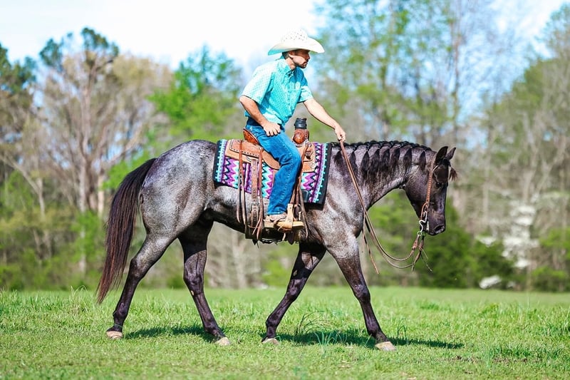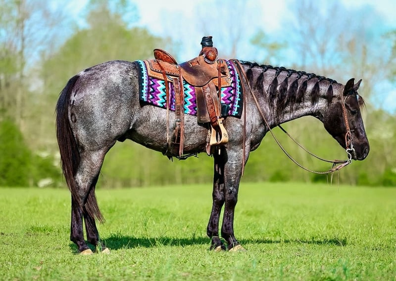 ⚜️𝐭𝐡𝐞 𝓔𝓵𝓲𝓽𝓮 𝐒𝐩𝐫𝐢𝐧𝐠 𝐂𝐥𝐚𝐬𝐬𝐢𝐜⚜️ Happening now thru MONDAY | APRIL 20th - Available EXCLUSIVELY on HorseBid's website! For more details and to register visit: www.Horsebid.com CONSIGNOR CONTACT: Double R Ranch Horses 931-623-1706 LOCATION: Lyles, TN BREED: Quarter Horse REGISTERED: Yes REGISTERED NAME: LC HECKUVA LEO 460 COLOR: Blue Roan HEIGHT: 15 AGE: 5 GENDER: Gelding “Diesel” This is the gelding that you can throw a saddle on any day of the week, point in any direction, and know you’re in good hands! This stunning true blue roan AQHA gelding is as easy on the eyes as he is steady in the saddle. He’s built right, and absolutely gorgeous- with a friendly, gentle personality that makes him so enjoyable to be around! Registered AQHA name, LC HECKUVA LEO 460 with some impressive bloodlines, this 5 year old gelding stands 15 hands tall, has plenty of experience, and a very good mind. Diesel is naturally friendly and loves attention, he is always ready to greet you at the gate. If you enjoy being around horses that are “in your pocket” you’ll love him. He has a gentle soul and a kind eye, and he is ready to be your best bud. He’s easy on the ground, stands quietly to groom, saddle, and mount, and has excellent manners. He loads, ties, bathes, and stands for the vet and farrier without a fuss. Diesel rides soft in the bridle, responds to leg cues, and is smooth and fun to ride! He has been trained to side pass over to pickup his rider on the mounting block, which is handy. Diesel has been a trusted trail partner with us, He’s safe, solid and has a great brain! He’s been one of our go-to choices when new riders want to go out or if we want to pack a kid along. He’s been ridden a little bit of everywhere, out on the trails crossing water, climbing steep rocky hills, checking cows and fences, arena riding, moving steers in the pasture as well as riding around downtown in the busy traffic! Diesel is sure-footed, calm, and confident. New scenery doesn’t bother him, passing wildlife, or navigating through rough terrain, he handles it all with patience and a steady step. It’s easy to relax and enjoy the ride on a nice horse like him. You’ll feel at ease on his back! We have put him in a variety of different situations, with an assortment of riders at different levels, and he remains patient and proves himself reliable and trustworthy every time. He’s also been started roping, and has done a little bit of English, just for the fun of it! Diesel is versatile, well rounded, adaptable, and ready to succeed in whatever direction his next owner wants to take him. Even if that’s a best friend in horse form! It’s hard to find everything Diesel brings to the table- all in one horse. To sum it all up, He’s just plain good. And in today’s world, that’s hard to find! Diesel passed his PPE by Equine Vet Todd Co Animal Clinic with flying colors! 📞 Contact Rachel Vick at 931-623-1706 to learn more or schedule a visit to meet Diesel in person.