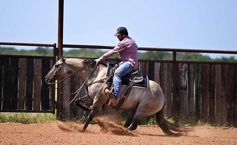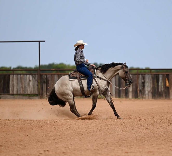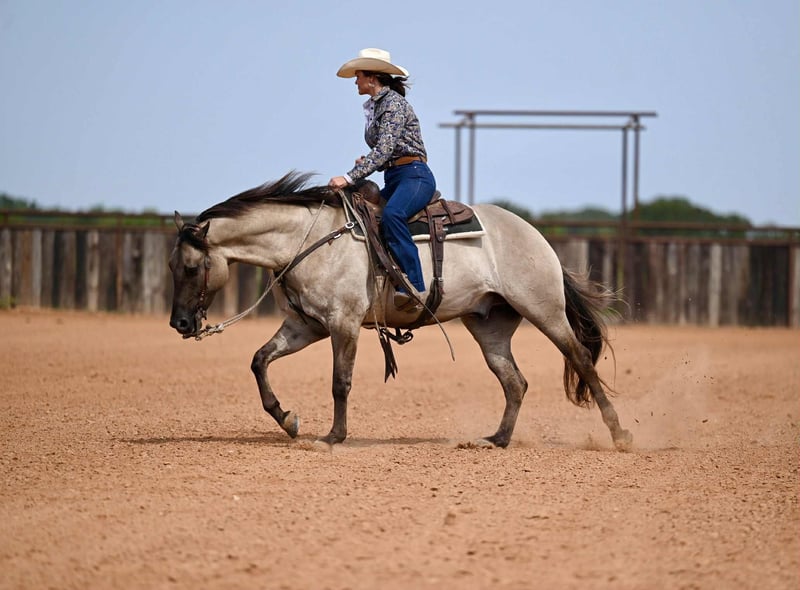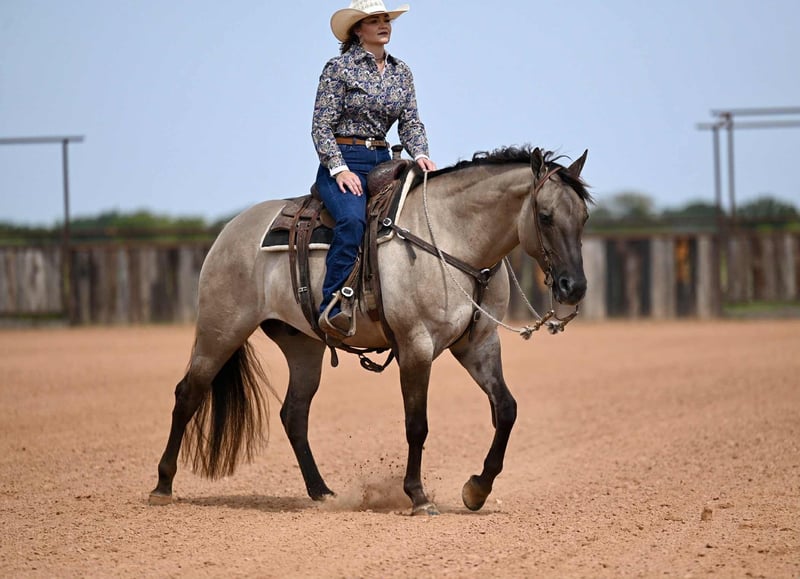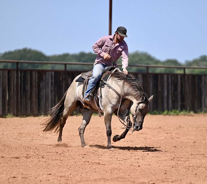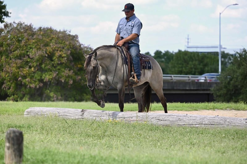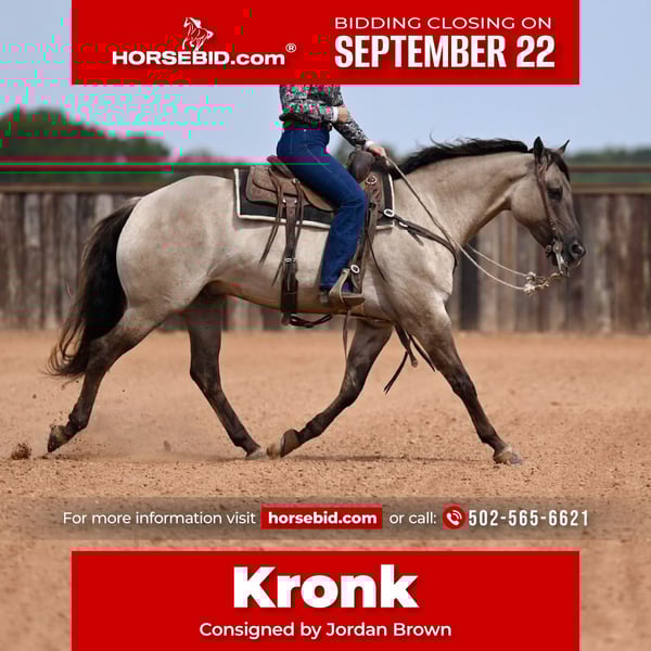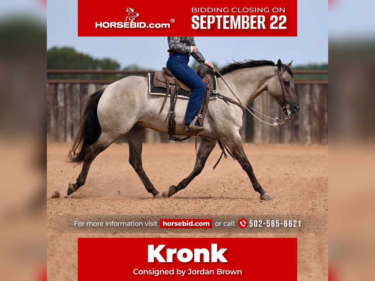 🍁𝒕𝒉𝒆 𝐅𝐀𝐋𝐋 𝑺𝒑𝒆𝒄𝒕𝒂𝒄𝒖𝒍𝒂𝒓🍁 Happening now thru MONDAY | SEPTEMBER 22nd - Available EXCLUSIVELY on HorseBid's website! For more details and to register visit: www.Horsebid.com CONSIGNOR CONTACT: Jordan Brown 502-565-6621 LOCATION: Waco Texas BREED: Quarter Horse REGISTERED: No REGISTERED NAME: Kronk COLOR: Grulla HEIGHT: 15.1 AGE: 4 GENDER: Gelding Affectionately known as “Kronk” a head-turning 15.1 grade grulla gelding. This kind and gentle guy is the poster child for the word versatile! Whether you want an all around family horse or to go show in the ranch riding, team rope on him, jump him or take him to the dressage ring he is skilled and polished in it all! No stranger to work, we have used Kronk extensively on the ranch gathering and sorting cattle, checking fences, and various outside chores. He is our go-to for timid, unsure, or green riders and he truly enjoys taking care of his passengers and calibrates to the ability of each person aboard. This guy prefers a slow, steady gait and easing around but will pick up and move out when asked. Easily the most enjoyable horse in the barn to ride with his gentle trot and soft lope as well as his smooth handle and consistent gaits. Smooth lead departures, a clean change, pretty turns, collects and extends beautifully, and of course a great stop! Moves off leg, super soft in the bridle, and as user-friendly as they make them. Has schooled stadium and cross country and progressing steadily in the dressage ring. Has roped both ends outside and going well in the arena on the head side. Has all the fundamentals and the correct foundation to be your next switch-ender! Fancy in any saddle, in any arena! Meets you at the gate each day and loves nothing more than scratches and a good bubble bath. Gets along in any herd dynamic and also enjoys being stalled. Stays gentle with time off and is the same horse every time. No history of lameness or previous injuries. If you’re looking for a steady, kind horse that will fit the whole family, this is your boy!