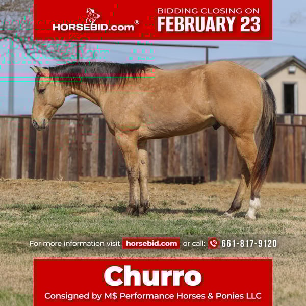 💎 𝐓𝐇𝐄 𝓓𝓲𝓪𝓶𝓸𝓷𝓭 𝐒𝐇𝐎𝐖𝐂𝐀𝐒𝐄 💎 Happening now thru MONDAY | FEBRUARY 23rd - Available EXCLUSIVELY on HorseBid's website! For more details and to register visit: www.Horsebid.com CONSIGNOR CONTACT: M$ Performance Horses & Ponies LLC 661-817-9120 LOCATION: Stephenville,Texas BREED: Quarter Horae REGISTERED: No REGISTERED NAME: Churro COLOR: Dun Skin HEIGHT: 15.2 AGE: 5 GENDER: Gelding Churro is a 5-year-old dunskin gelding standing 15.2 hands tall with the kind of mind and experience that’s hard to find at any age. He’s been a true working ranch horse, handling everyday chores outside, penning back cattle weekly at the sale barn, loading trucks, shagging bulls, and picking up bucking horses. He’s also traveled to the wagon races in Clinton, Arkansas, and has been ridden through the famous Fort Worth Stockyards down Exchange Avenue, confidently navigating traffic, crowds, and commotion without hesitation. Churro is a big, easygoing gelding with a willing attitude and a genuine desire to please. He’s the same steady horse whether you’re putting in a long day’s work or heading out for a relaxing trail ride. He will cross logs, bridges, rivers, and creeks, and is comfortable in the mountains or flat countryside. Point him where you want to go and he’ll take you there with confidence. He’s a standout not only for his eye-catching dunskin color, but for his kind, in-your-pocket personality. Horses with his combination of age, experience, disposition, and size don’t come around often. Churro is the kind you’ll be proud to own and enjoy for years to come. We are open to anyone interested in him to schedule a time to come see him or if you can’t make it schedule a FaceTime showing to see him. If you need help with transport don’t hesitate to ask we have a list of reputable haulers that can get him safely to your doorstep WORLD WIDE including, Alaska , Mexico, Hawaii, Canada and anywhere in between from Stephenville, TX.