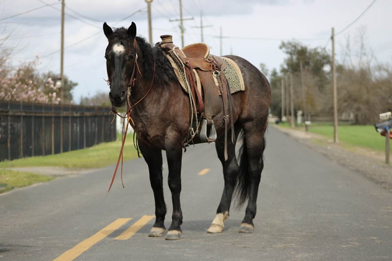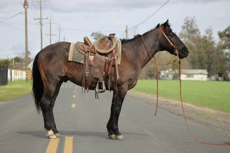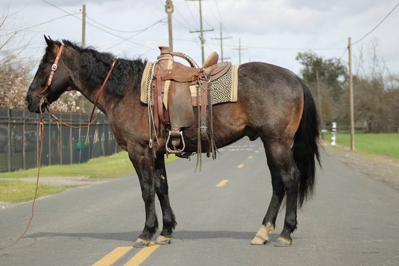 "AVAILABLE ON ONLINE HORSE AUCTION AT www DOT PlatinumEquineAuction DOT com BIDDING OPEN NOW thru SUNDAY | MARCH 8TH! *Final price will be determined on auction site* CONSIGNOR CONTACT INFO: Emily Cervantes 562-458-6261 LOCATION: Atwater, CA Tuco is a 2013 model grade 15.2 hand blue roan gelding, Sweet, gentle, kindhearted, willing, broke, theres not enough good stuff to say about him ! Tuco has looks for the big screen and build that is gonna bring you all the attention in and out of an arena ! Tuco has the kind of heart someone can only dream of finding in a horse. He is an excellent partner, Tuco will cruise down all types of terrain and trails handling it all with grace and a smooth pace. He’ll walk through water and over big rocks , making sure you are safe and comfortable the whole time. He does not fuss over dogs , cows , cars , bikes, trailers or cats! Tuco handles it all with a confident stride. He doesn’t mind taking on trails alone or in a large group. Whether leading the group or hanging in the back, Tucos just happy to be there! Not only is he a confident trail blazer outside the arena, Tuco is also a complete dream to ride inside the arena, he has a smooth slow walk ,trot, and lope. He has a nice slow spin , side passes, backs up , and the lightest neck rein you could ask for. Tuco excels in an arena. You can carry a flag and give everyone your best queen wave off him ! What sets Tuco apart is his unwavering reliability. He's the ideal mount for any level of rider, from seasoned ranch hands to novice enthusiasts. Tuco’s calm demeanor and trustworthy disposition mean you can give him as much time off as you'd like, and he'll always come back ready to work without missing a beat. If you're searching for a horse who embodies versatility, reliability, Tuco is the one for you. Whether you're hitting the trails, working hard on the ranch,or having a play day ,Tuco will be your steadfast companion through it all. Call Emily for more information at (562)-458-6261 or to set up an appointment to meet this gem. Located in Atwater , Ca. Delivery can help be arranged anywhere in the U.S.