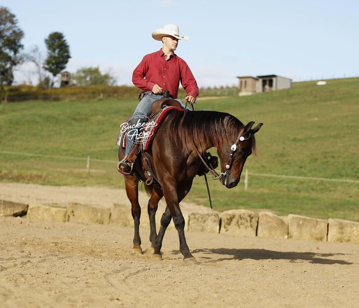 Niko, a 2020 model bay roan AQHA gelding standing a solid 15 H