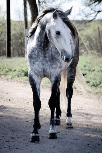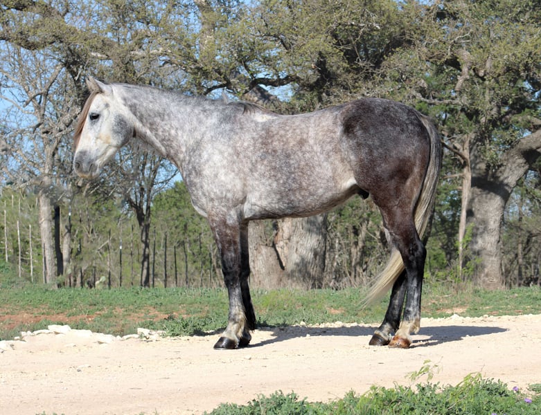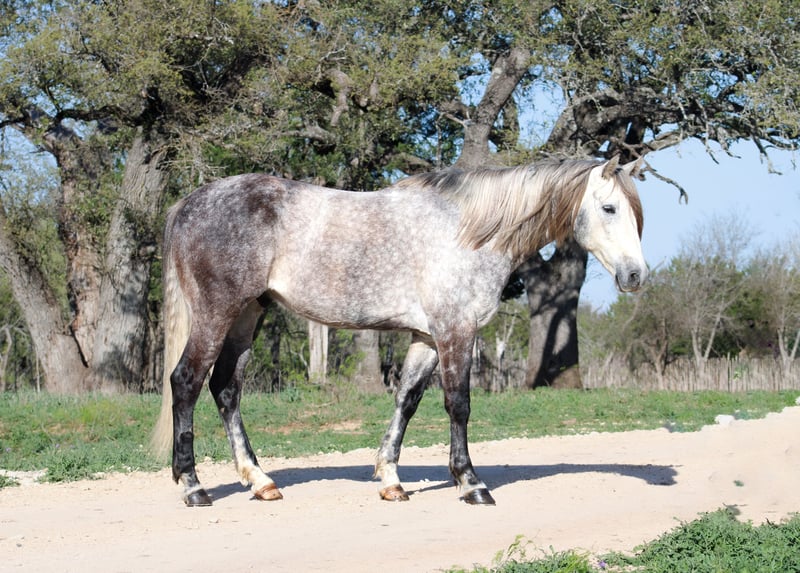 Dave, un potro de 5 años, de 16 manos, gris, de raza Quarter Horse, y yegüez.
