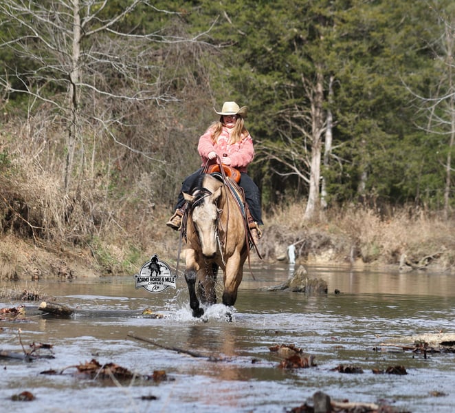 He is consigned to the COWGIRL CADILLACS Sale in Wickenburg, AZ on February 20-21st. You can bid online or bid in person. There is a preview day before the sale or you can come ride him prior to the sale in Mt. Vernon, KY. Register to bid at www.CowgirlCadillacs.com More info at www.AdamsHorseAndMuleCo.com $10000 starting bid Smooth As Pendleton…a little bit of whiskey is said you calm your nerves and ease the tension, just making you more relaxed… there is not a more fitting name for this guy than Whiskey!!! As a 15.2h, 2021 Model with 11 AQHA points to his resume and over $6800 earnings, Whiskey is no stranger to the spotlight as he has been shown extensively and qualified in 2024 for the AQHA World Show in Ranch Trail (which is a ranch and trail obstacle course that involves cattle and log jumps). He rides low headed on a draped rein, lopes perfect circles, takes his leads, does flying lead changes, spins both ways, side passes, and has a good stop. To say the least he has all the moves and maneuvers that a person could dream of. Just as the pressure of the show pen doesn’t bother Whiskey neither does a roaring rodeo crowd of 3000 people, screaming and cheering as the speakers blare Kid Rock’s song “Born Free”, as he lopes around the arena carrying the flag at the grand entry. While at the rodeo Whiskey has been used to sort, pen and load rodeo bulls. The girls also used Whiskey to give “pony rides” on at 4 different rodeos. They had all ages of kids and adults stand in line for a ride on their horses. Obviously, Whiskey knows his way around the show pen and rodeo arena, but this pretty boy loves to get dirty out on the trails, packing the kids through the mud! Whiskey will build your confidence levels out on the trails and make a nervous beginner look like a seasoned pro! He has been trail ridden extensively in multiple states including, Iowa, Minnesota, South Dakota, Kentucky, Tennessee and North Carolina. Steep slopes, deep water, deadfall, boggy mud, all sorts of wildlife… nothing phases him, he is not spooky and he is a master on the trails! Whiskey will take care of his rider in any situation or terrain. Whiskey has been ridden around the ranch, he knows his way around cattle and has been roped off as well. He will hold what you tie to him and doesn’t get nerved up in a bad situation. Whiskey is not spooky and is accustomed to tarps, wind dancers, bull whips and gun fire. Whiskey has been ridden in English tack and will jump across the rails with ease. We have had him through town, the drive thru and he is traffic safe. Whiskey loves to take a bath, get soaped up, get his hair done up in braids and loves to spend time with the kids. If you are looking for a horse to show, a horse to trail ride, a horse to do ranch work on, a horse to jump and a horse to do lessons with… instead of buying six horses just buy the all in one and it will be smooth sailing the rest of the way because nothing is as Smooth As Pendleton!!! Whiskey is available to ride and see in Mt. Vernon, KY until the week of the sale Feb. 16-21. Call for more info or if you have any questions 606-308-2461. He is consigned to the COWGIRL CADILLACS Sale in Wickenburg, AZ on February 20-21st. You can bid online or bid in person. There is a preview day before the sale or you can come ride him prior to the sale in Mt. Vernon, KY. Go to visit our website for more pics and a video www.AdamsHorseAndMuleCo.com AHAMC has been in the horse business and sold horses over the internet since 2005. We have a long track record of success with hundreds of happy customers. We work hard to match riders with the correct horses and specialize in beginner safe, family friendly horses that have been used and checked out by our family! We can set up transportation anywhere in the US and look forward to working with you. Register to bid at www.CowgirlCadillacs.com More info at www.AdamsHorseAndMuleCo.com $10000 starting bid