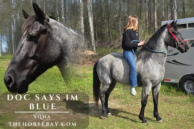 One of a kind Registered Quarter horse blue roan gelding, 4 years old, 15.2 hands. Check out the bloodlines and this fella! Solid black face and legs, gorgeous silver body! Not only does he have the looks, but he also has the brains! In addition to him being handled since day one, he recently spent 90 days at Shaw performance horses training. He will meet you at the gate and follow you around, loves attention and has a great sense of humor! He has been exposed to just about everything… he is good on trails, road safe, good with other horses and animals. Loads, ties, bathes good with vet and farrier. Loves water, He will take a hose and spray himself! He is ready to go in any direction. He is great with my grandkids, but I would not say he’s a kid’s horse, he can be a little on the lazy side and if you don’t know what you’re doing, he will just stand there. But don’t get me wrong …with the right rider… If you want speed, he’s got that too! No injuries no illnesses, all vet records and farrier information available. He will go out on his own or in a group. This is a family-owned horse who is loved but not getting the attention he deserves, due to life changes.