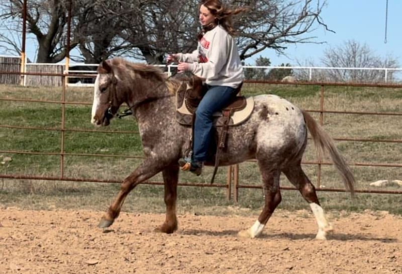 ONLINE AUCTION Place your bids at www.PlatinumEquineAuction.com Starting Bid $3500 Auction ends January 26th, 2025 Need a new saddle? Check out White Rock Saddles on our website or Facebook! Bambino aka “Bamb” is a 13.3H, 5 yr old Appaloosa gelding. Bamb is the cutest little step up pony for a handy youth or adult looking for something COMFY, small and fun! He is put together super correct and is one of the most handsome little app ponies we’ve ever represented! He has spent the last couple years as a handy kid playday horse, once they were ready for bigger performance horses, he moved on to a trail pony for a younger adult lady! Not many ponies have the handle this guy does! He’s broke like a seasoned big horse, very light to ride around, one hand broke and stops excellent! Bamb is EXTREMELY comfortable and has very floaty gaits! With a little more training, he’d easily make a little breakaway / rope horse prospect as he naturally wants to stop! He’d also be the perfect little rodeo horse for the handier kids wanting something fun and athletic!! Bambino goes the speed you ask, when you ask of him and is easy to ride and get along with. He’ll walk through water, and stays quiet on trails and in the arena. He’s happy to do any job you put him to and will go all day if you need. Bamb is NOT your typical “hot” pint sized jar of fun. He is calm, cool and collected and will never go faster than you ask! He’s NOT a “blown up” playday pony by any means. He’s very respectful and only really wants to please. Many horses his size are yee yawed around on by kids and as a result are hot and fractious to ride. NOT Bamb! He’s been rode by very respectful, handy kids that have rode him correctly! Being that he’s only 5, we do suggest an experienced rider only due to the fact he is pretty handy and athletic! He loads, leads, bathes, ties good and is UTD on feet, teeth and coggins! You don’t want to miss this unique opportunity to own an extremely put together, gorgeous little app gelding! Watch his video and go to his website page northtexashorsecompany.com/bambino for more pictures and footage! Please call Blair with North Texas Horse Company for more info at 817-757-3046. We LOVE to talk about him! We are located in Weatherford, TX and can help arrange affordable shipping to anyone!!