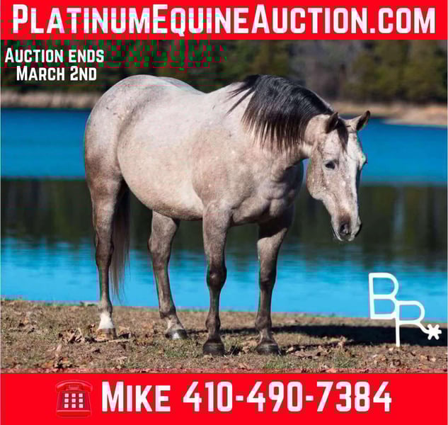 ONLINE AUCTION Place your bids at www.PlatinumEquineAuction.com Starting Bid $3500 Auction ends March 2nd, 2025 Need a new saddle? Check out White Rock Saddles on our website or Facebook! Everyone meet Joey! This is an adorable 5 year old quarter pony is stout made gelding and sticks right at 14 hands tall and just about as wide. With his stout build and short legs he is the perfect horse to carry an adult who has difficulty mounting as he is low to the ground. He is an absolute gem to be around with an in your pocket, puppy dog personality. This guy will come running to fence to greet you and follow you around anywhere you go. Loves to be groomed, petted and loved on by anyone standing in the barn. There was multiple children running around the barn one day and Joey was standing tied in the aisle way. All four children were hanging all over/underneath him and he just stood there and soaked in all the attention. On top of his exceptional personality, Joey is super quiet, gentle and easy to ride. Wonderful smooth W/T/C. Easy leads and a floating trot. Push button leads changes. More whoa than go and a push type ride. Jumps a full course of 2’3″ fences. Very willing and honest to base of the jumps. Stays straight in the lines and easy to adjust distances. Joey has been trail rode throughout the Mark Twain National Forest where he takes any obstacle you throw at him with ease. Has been used around cattle and checking fences. Will ride out by oneself or in a group. No spook, bolt, or buck. Stays the same with time off. Would make an excellent kids hunter/pony club or all around pony. No lameness issues and 100% sound. Located in Mountain Grove, MO. Come with UTD basic PPE, Coggins, Health Papers, Vaccinations, Dentist, Farrier. We HIGHLY encourage customers to come try our horses in person before buying to ensure an excellent fit between horse and rider. Anyone who comes to try our horses in person will have the option to receive a 1 hour riding lesson with Beaver Ranch to better learn how to communicate with your new horse. For more information on Joey or to schedule a time to come visit Joey please contact Beaver Ranch Mike 410-490-7384 or Lindsey 443-786-5611. ONLINE AUCTION Place your bids at www.PlatinumEquineAuction.com Starting Bid $3500 Auction ends March 2nd, 2025 Need a new saddle? Check out White Rock Saddles on our website or Facebook!