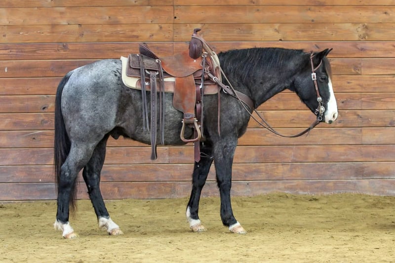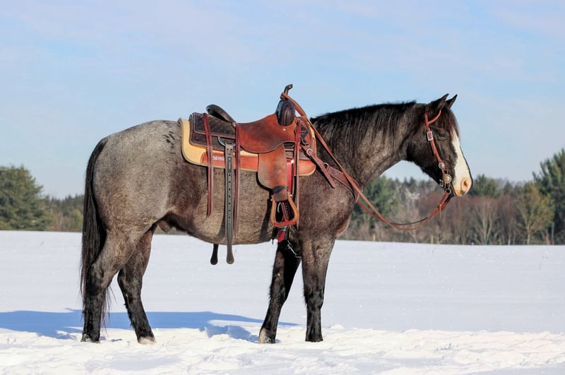 ⚜️ 𝓗𝓮𝓻𝓲𝓽𝓪𝓰𝓮 𝐖𝐢𝐧𝐭𝐞𝐫 𝓒𝓵𝓪𝓼𝓼𝓲𝓬⚜️ Happening now thru MONDAY | DECEMBER 29th - Available EXCLUSIVELY on HorseBid's website! For more details and to register visit: www.Horsebid.com CONSIGNOR CONTACT: KS Horses 814-229-3290 LOCATION: Clarion, PA BREED: QH REGISTERED: No COLOR: Blue Roan HEIGHT: 14.1 AGE: 5 GENDER: Gelding Theo is a 5 Year Old Blue Roan Quarter Horse Gelding. Standing 14.1 hands tall making him nice and easy to get on and get off but also stocky enough built to carry any size rider. Theo is the Total Package with safety and looks! He is the perfect fit for the whole family to ride and be around because he is so quiet and gentle in every way! He has been ridden into down and down the main streets and roads and is traffic safe. Been on many of trail rides and trail ridden in the rough terrain. Has been hauled to state parks and trail ridden. He was even ridden to the local drive in movie theatre. Theo rides very nicely in the arena and has a nice smooth walk , trot and canter and lopes nice circles each way hitting his correct leads. One hand neck reins, side pass and has nice head set and back up. Super Nice All Around Gelding! If you value your safety and been looking for that good broke all around horse dont miss out on Theo! We can help arrange delivery anywhere in the United States. Call or Text Kris at 814-229-3290. Thank You and God Bless