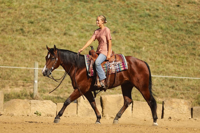 Sandman is the total package—a 2020 model AQHA gelding standing at the perfect size of 14.2 hands. With his correct conformation, shiny black mane and tail, and a small white star and snip, he is as eye-catching as he is talented. Whether you are looking for a partner on the trail, in the show pen, ranch riding, or simply a forever friend, Sandman fits the bill. He is bred to perform, being an own son of Sannman (over $200,000 in earnings and $3 million in offspring earnings) and tracing back to Hall of Fame sires Metallic Cat and Smart Little Lena on the top side. His bottom side is just as impressive, going back to the legendary Peptoboonsmal, a Hall of Famer with over $28 million in offspring earnings. Sandman has the looks, pedigree, and the brains to match. He has a bright eye, a willing “in your pocket” attitude, and has truly “been there, done that.” He has been used to check cows, ride fence lines, and moving cattle. Out on the trails, he is steady and confident—crossing creeks, riding through water, going uphill and downhill, and stepping over logs without hesitation. He is traffic safe on state roads, rides inside the arena or outside on the ranch, and takes everything in stride. In the arena, Sandman is a handy and versatile partner. He knows his leads, has a nice one-handed neck rein, correct lead changes, a good spin, a solid stop, and will even side pass right up to the gate for you. He has also been ridden bareback and bridle less, proving his willingness and trust. Whether you want to show him in reining or cow events one day or let the kids enjoy him on a weekend trail ride the next, he is safe and dependable for kids, seniors, or advanced riders alike. Sandman has three smooth gaits you will love to ride, an easy walk, a nice jog, an extended trot, and a lope you can sit on all day. He does not need to be ridden every day to stay good; he is the same horse whether he has ridden once a week or once a month. In the barn and pasture, Sandman is a real charmer. He is good for the farrier, stands in the wash bay, and absolutely loves attention. This gelding has the talent, bloodlines, and personality to be your forever partner—whether in the show pen, out on the ranch, or as the one you trust with the whole family. If this sounds like the horse you have been looking for, please feel free to reach out to Duane @ 330-231-2324 for more info or to schedule a day to see him in person.