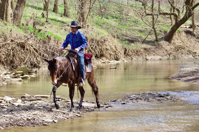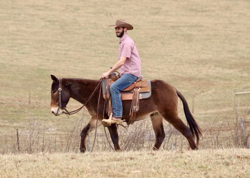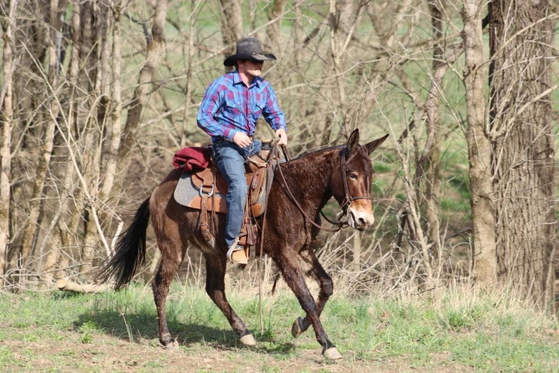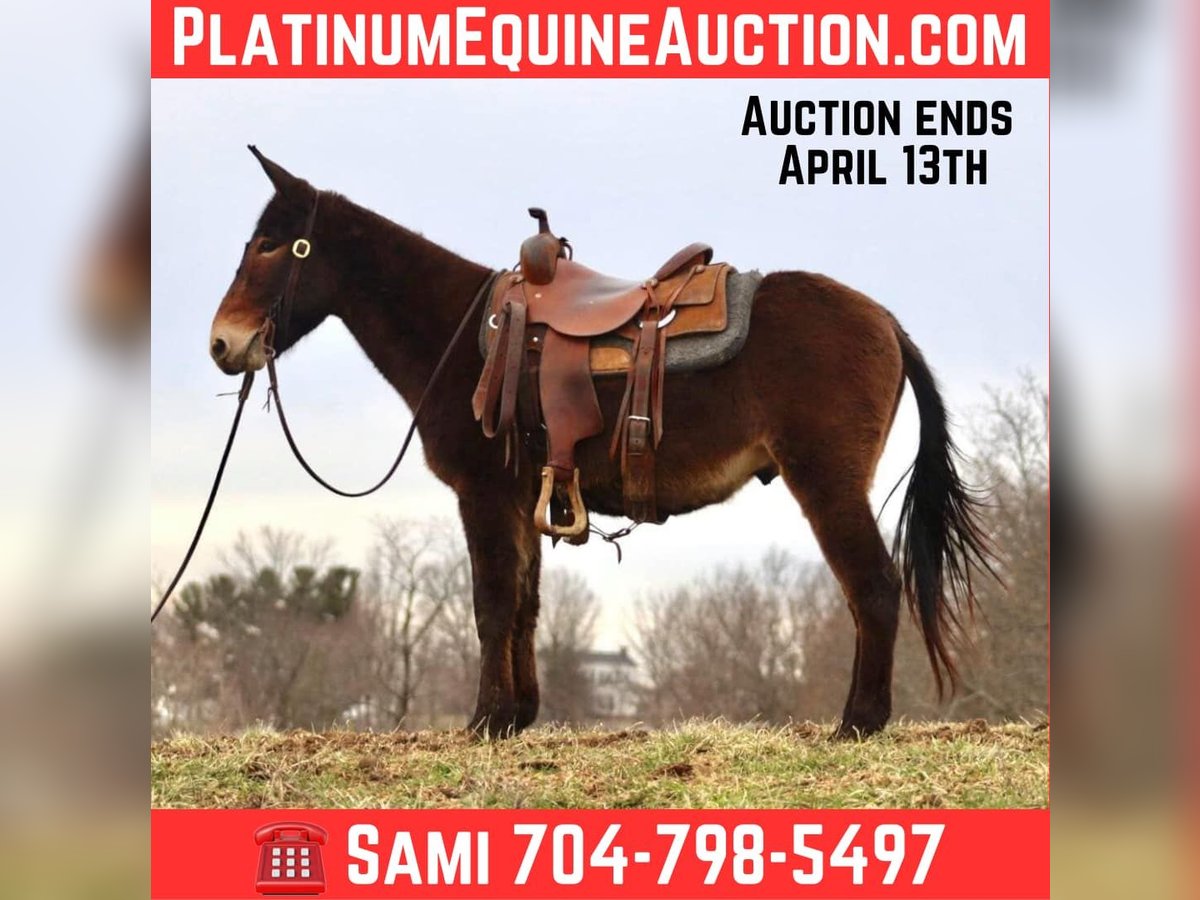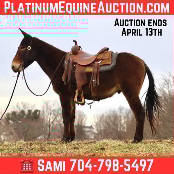 ONLINE AUCTION Place your bids at www.PlatinumEquineAuction.com Starting Bid $3500 Auction ends April 13th, 2025 Need a new saddle? Check out White Rock Saddles on our website or Facebook! Gus is a 5 year old, 14.2 hand John mule. He is a quiet, safe, gentle, and friendly mule. He’s been trail ridden throughout his life and that is where he shines. He is a mountain goat type, if you point his nose, he will go. He is not a spooky type of mule that is looking for boogers to jump at. He rides anywhere in the group. His confidence is growing as the lead mule and he does well in that spot, but he also follows along really well too. Most of his riding has been by a weekend warrior type person that likes to relax on the weekends by riding and drinking beer, so following has been his forte. But with that being said, everyday he is getting better about leading and being more confident out alone. Gus crosses bridges, steps over logs, crosses rivers, slides down steeper banks, and climbs back up the other side. He rides down the trail or road nicely in a loose rein. He has a phenomenal lope that is very comfortable. Gus rides softly. He occasionally has a young mule moment about turning or going somewhere “off the path” but just a little encouragement and he does what he is supposed to do. Every week those little things happen less and less as he continues to get better with each ride. Gus stands to saddle and mount. We’ve thrown a rope off of him. He has ridden through the cows. He trailers well and gets along with others in the group setting turned out. He also has nice stall manners. He is a solid young mule ready for the spring and summer rides! For more information, please call or text Sammi Waugh 704-798-5497 Located in Brooksville, KY. ONLINE AUCTION Place your bids at www.PlatinumEquineAuction.com Starting Bid $3500 Auction ends April 13th, 2025 Need a new saddle? Check out White Rock Saddles on our website or Facebook!