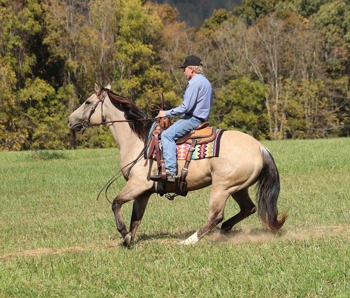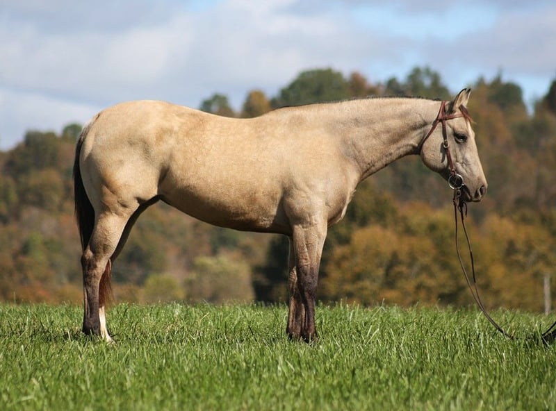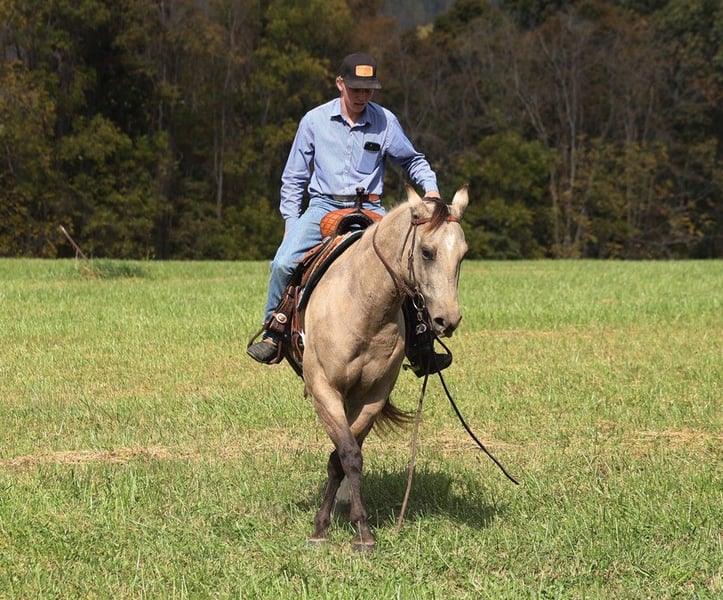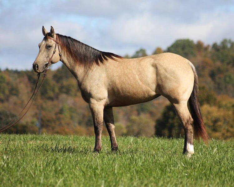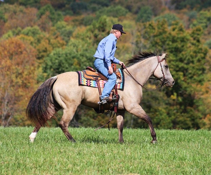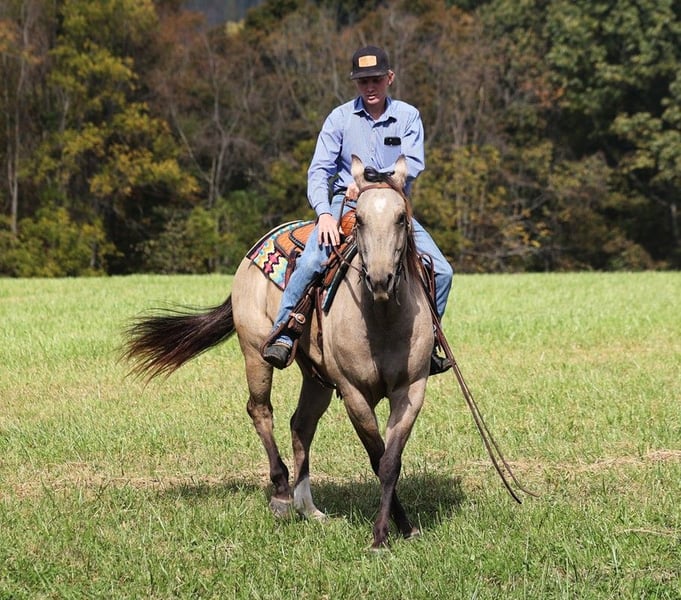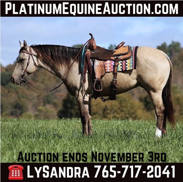 ONLINE AUCTION Place your bids at www.PlatinumEquineAuction.com Starting Bid $3500 Auction ends November 3rd, 2024 Need a new saddle? Check out White Rock Saddles on our website or Facebook! Get your check list and sharpen your pencil, this lady is goin to check all the boxes! AMS Jewels Blackburn is a coming 5 year old, Buckskin/Dunskin mare that is total eye candy but the best part about her is more than what meets the eye! Jewel stands between 14.3 and 15H with the dun stripes on her legs and down her back. She is carrying the Shining C brand on her shoulder who is one of the most prolific breeders in the country of grulla, dun and buckskin horses. Jewel is a registered Quarter Horse and has a great pedigree with Nu Chex To Cash and Mr. Blackburn 953. Jewel has the color, the size, the build, the mind, the safty, she has been ridden by beginners and she has the rideability! Jewel is easy to handle, she tacks up quietly, stands to mount and rides off slow and easy like a good horse should do! We have had Jewel since back in the spring and I have used her for trail riding and ranch work. She has been out on some cow catching jobs and handles herself with poise even in tense high stress situations. She has roped in the pasture, held the rope tight while I tied them down, drug cows on the trailer and stands her ground against mad ones. Out on the trails, Jewel is great and loves to go trail riding. She will cross obstacles and goes over any terrain. She has been exposed to all kinds of wildlife such as deer or turkey and will go anywhere that she is asked too. She will go up or down even the steepest slopes, across deep creeks, over downed trees, and over all types of rough terrain while still being sure footed. Jewel will lope nice circles, she takes her leads, stops and backs as well. She has been ridden in traffic, and is very traffic safe around cars, semi, log, and dump trucks. She has a great attitude about whatever she is asked to do. Feel free to call Lucky 13 Equine Lysandra 765-717-2041 any questions or to make a buy it now offer. Located in Brodhead, KY. ONLINE AUCTION Place your bids at www.PlatinumEquineAuction.com Starting Bid $3500 Auction ends November 3rd, 2024 Need a new saddle? Check out White Rock Saddles on our website or Facebook!