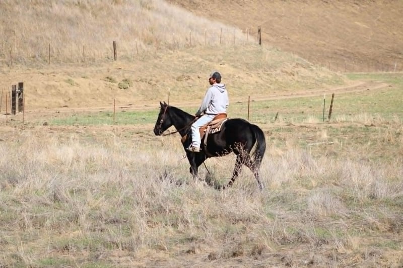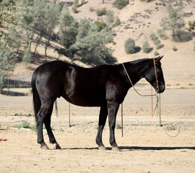 Coaltrain – The Kind That’s Coming Along Just Right Coaltrain is a 6-year-old black gelding standing 14.3 hands — built right, gentle-minded, and easy to get along with. He’s the kind you can saddle up and enjoy without a bunch of drama, but still young enough to keep shaping into anything you want him to be. He’s spent most of his time being used around the ranch to gather cattle and check pastures, and he’s taken to every job with a calm, willing attitude. He’s surefooted and confident outside — crosses water, handles brush, and makes his way through rough country without a fuss. Coaltrain’s been around dogs, tractors, traffic, and all the usual ranch commotion, and he takes it all in stride. He’s also been getting some time in the arena and learning new things every week. He’s got good basics — moves off your leg, follows his face, and stays soft in the bridle. He’s the kind that learns quick, tries hard, and doesn’t get worked up when you show him something new. We’ve been introducing him to obstacles and flags, and he’s handled everything like a gentleman. He’s got a solid foundation, a great attitude, and plenty of talent to go in any direction you’d like. Whether you want to keep him as a reliable trail horse, keep building him into a ranch versatility or sorting mount, or just enjoy him for what he already is — he’s a good one to have around. He’s easy to haul, bathe, and tie, and he’s always quiet to handle. Coaltrain’s the kind that fits a lot of riders — safe, steady, and uncomplicated, yet still with enough feel and try to keep things fun. 📞 Contact Hailey:+13039908552 🚚 Nationwide shipping available