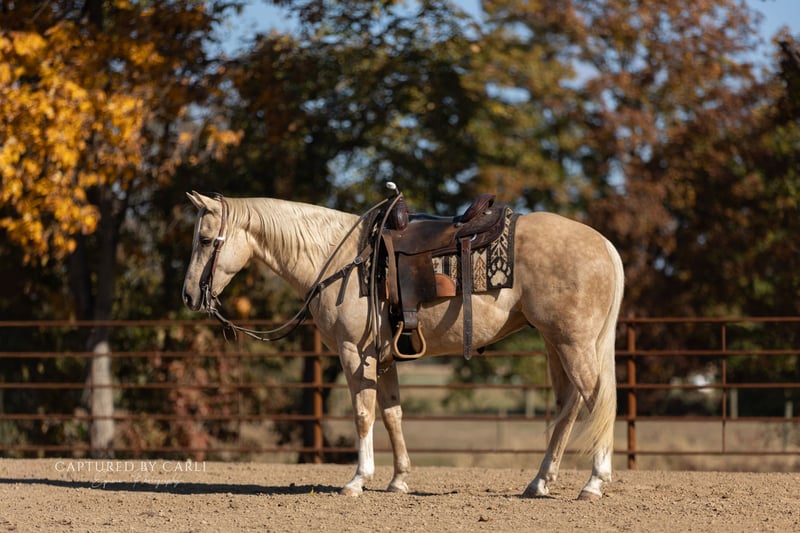 𝐉𝐨𝐧𝐞𝐬 𝐅𝐚𝐦𝐢𝐥𝐲 & 𝐕𝐞𝐫𝐬𝐚𝐭𝐢𝐥𝐢𝐭𝐲 𝐇𝐨𝐫𝐬𝐞𝐬' 🍂𝑳𝒆𝒈𝒆𝒏𝒅𝒔 𝒐𝒇 𝒕𝒉𝒆 𝑭𝒂𝒍𝒍🍂 Happening now thru MONDAY | DECEMBER 8th - Available EXCLUSIVELY on HorseBid's website! For more details and to register visit: www.Horsebid.com CONSIGNOR CONTACT: Jones Family and Versatility Horses 618-535-9966 LOCATION: Lewistown, IL BREED: Quarter Horse REGISTERED: Yes REGISTERED NAME: FREEDOM GOTTA GUN COLOR: Palomino HEIGHT: 14.3 AGE: 5 GENDER: Gelding Bullet is a stunning 5-year-old dappled palomino gelding standing a balanced and correct 14.3 hands. He is the kind that catches your attention before he ever takes a step soft eye, proud presence, and unmistakable quality from every angle. Bullet carried on himself with confidence and class, and he has the disposition to match. He genuinely enjoys people and loves attention. His talent, mind, and presence don’t come by accident. Bullet is by a proven money earning reining sire and carries the blood of legends, going back to greats like the iconic Hollywood Dun It, Colonels Smoking Gun “Gunner” and Reminic. With proven performance genetics top and bottom, his pedigree matches his ability and sets him up for success in versatility, performance, or ranch events. Bullet is the type that makes you feel lucky to swing a leg over him each day. He tries hard, aims to please, and stays curious and willing in everything he does. He has been exposed to an extensive list of experiences general ranch work, overnight trail rides, obstacles, English fences, cattle, tarps, flags, and more. No matter where he goes or what he sees, he stays thoughtful, steady, and intelligent in his approach. He is exceptionally talented with a ton of natural feel, yet kind and forgiving enough for a confident beginner or greener rider to continue growing on. Bullet has a big smooth stop, correct turnarounds, fluid transitions, and beautiful circles. He is soft, supple, and responsive light in the bridle and rides off your seat and body cues. He gives his rider that sought after “feel” that builds confidence and elevates their horsemanship. He truly makes his rider look good. Bullet stands quiet all day if you need him to, or he will step up and work all day when asked. He hauls great, settles anywhere, rides alone or in a group, and gets along well in the pasture. Whether you want to pursue ranch versatility, enjoy trail riding and family life, explore English, or develop him into a rope horse his future is wide open and incredibly bright. We have ridden Bullet in a snaffle, bosal, shank, ported bit, and even bridleless he accepts it all with ease. He’s as honest and genuine as they come, and he’s absolutely the type to become someone’s once-in-a-lifetime partner. This kind doesn’t come around often. We are proud of him, and he will truly add quality and joy to someone’s life. As hard as it is to let him go, we are excited for his next chapter he is ready to be someone’s unicorn.