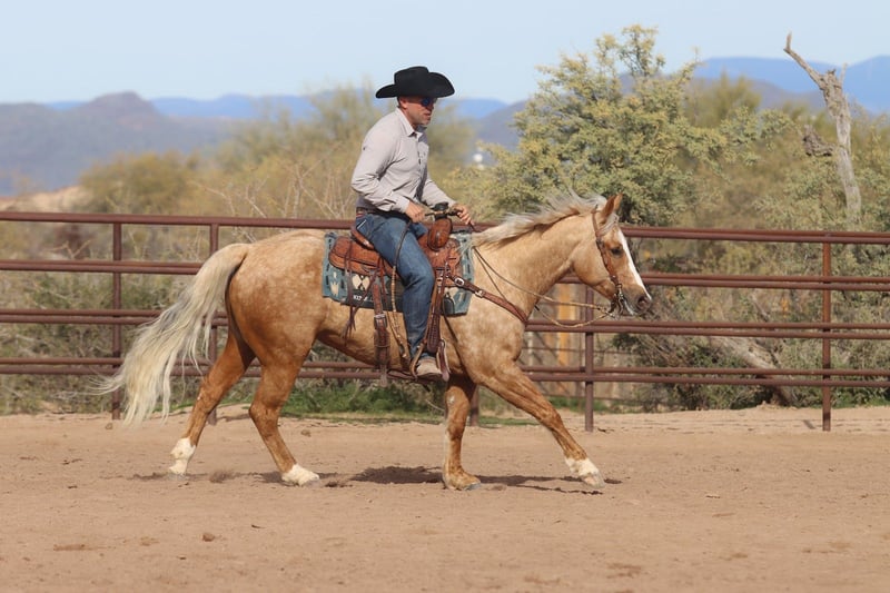 ♦️𝐍𝐄𝐖 𝐘𝐄𝐀𝐑'𝐒 𝑬𝒙𝒕𝒓𝒂𝒗𝒂𝒈𝒂𝒏𝒛𝒂♦️ Happening now thru MONDAY | JANUARY 12th - Available EXCLUSIVELY on HorseBid's website! For more details and to register visit: www.Horsebid.com CONSIGNOR CONTACT: Oscar Palacios 612-750-0507 LOCATION: Scottsdale, AZ BREED: AQHA REGISTERED: Yes REGISTERED NAME: PLAYBOYS PESO COLOR: palomino HEIGHT: 14.3 AGE: 6 GENDER: Gelding Playboys Peso 6 year old Palomino Gelding Playboys Peso is a well-bred, athletic palomino gelding that has had a correct, cowboy foundation. He was started by a cow horse trainer and has been cowboyed on, giving him a solid handle and good exposure. Peso has been started in the roping boxes and is showing a lot of promise as a rope horse prospect. He is quick-footed, athletic, and has the kind of feel and responsiveness that ropers appreciate when bringing one along the right way. He tracks cattle well and continues to progress with each ride. He has been ridden outside a lot and is comfortable in open country as well as in the arena. He can have some extra energy at the start of a ride, but settles in quickly once working and rides honest and willing. He would be best suited for an intermediate to experienced rider who appreciates an athletic horse with some go. This is a quality young gelding with a strong start and a bright future in the roping pen for the right person.