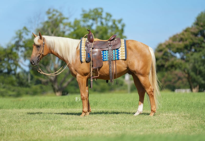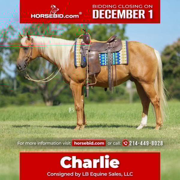 ⚜️ 𝓽𝓱𝓮 𝐇𝐨𝐫𝐬𝐞𝐦𝐚𝐧'𝐬 𝓢𝓱𝓸𝔀𝓬𝓪𝓼𝓮⚜️ Happening now thru MONDAY | DECEMBER 1st - Available EXCLUSIVELY on HorseBid's website! For more details and to register visit: www.Horsebid.com CONSIGNOR CONTACT: LB Equine Sales, LLC 214-449-8028 LOCATION: Terrell, TX BREED: AQHA REGISTERED: Yes REGISTERED NAME: Yellowstones Delight COLOR: Palomino HEIGHT: 14.3 AGE: 5 GENDER: Gelding Meet Charlie – the golden palomino gelding everyone dreams of owning. Charlie checks all the boxes: a friendly, easy-going personality, a quiet and sensible brain, eye-catching good looks, and the perfect size. Whether you’re searching for a fun, safe, and steady weekend trail partner, your palomino dream horse, or a versatile show prospect, Charlie is the complete package. This gorgeous gelding is elegant across the ground, consistent in cadence and pace, and eye catching wherever he goes. We’ve had Charlie in our program since May, and he has quickly become our go-to mount for guests and riders of all levels down the trail and in the arena. He has been a great confidence builder down the trail—steady, quiet, and happy to head out on any adventure. Traffic, trains, four-wheelers, cattle, strollers, gunfire, flags—you name it, he takes it in stride. Not spooky by nature! Never worried or fazed by things – he is even forgiving of rider mistake, he stands tied patiently, loads and hauls with ease, and settles right in at new places. He is not easily spooked (as seen in the videos) and can really put up with a lot of commotion! Charlie has been ridden in town, through the Sonic drive-thru, at covered arenas, and across all kinds of terrain. He crosses water, steps carefully over logs, navigates bridges and ravines, and goes out alone or in a group without hesitation. Lead, follow, or fall in the middle—Charlie is content wherever you put him. He’ll happily plod along on a loose rein and wants to be low-headed and relaxed. In the arena, Charlie shows tremendous potential as an all-around show horse. His hack-winning trot and rhythmic canter make him a standout. He’s soft in the bridle, stops off your seat, pivots around, and carries himself in a beautiful frame. Gentle yet willing, he has the “ready to work” attitude without ever being hot. He could easily shine as a hunter, ranch rider, or all-around mount for anyone with more finesse. He’s also been used to drag logs, carry flags, had guns shot off him, and ponied other horses—always honest and dependable with any task granted to him. Off property he is a trailer to ring/trail type of ride! He is BRAVE over fences and has a lot of try. Beyond his training, Charlie is a joy to be around. He has a goofy, playful side that makes him easy to love, and his sweet temperament speaks for himself. He wants to be very personable and in your pocket. Prior to joining us, he was a trusted family horse, toted around little boys—a true testament to his kind nature. Those boys climbed all over him! He’s excellent to handle, good in a stall, easy to catch (he’ll walk right up and stick his face in the halter), and gets along well in turnout. He can be kept barefoot or shod—sound and sane either way. Up-to-date vet work including coggins, vaccines, x rays, dental float, and deworming (all available on our website). This gelding has a stunning slick golden coat - just beautiful! Clean radiographs on file to view, along with a recent PPE report stating his soundness! Don’t miss this once-in-a-lifetime gelding—Charlie is the kind everyone wants! He wants to be your favorite buddy and pal. All paperwork including AQHA papers / transfer and bill of sale is in order and ready to be signed between buyer and seller at the conclusion of the sale. Link to current x rays here: Terrell TX | Transportation can be arranged anywhere.