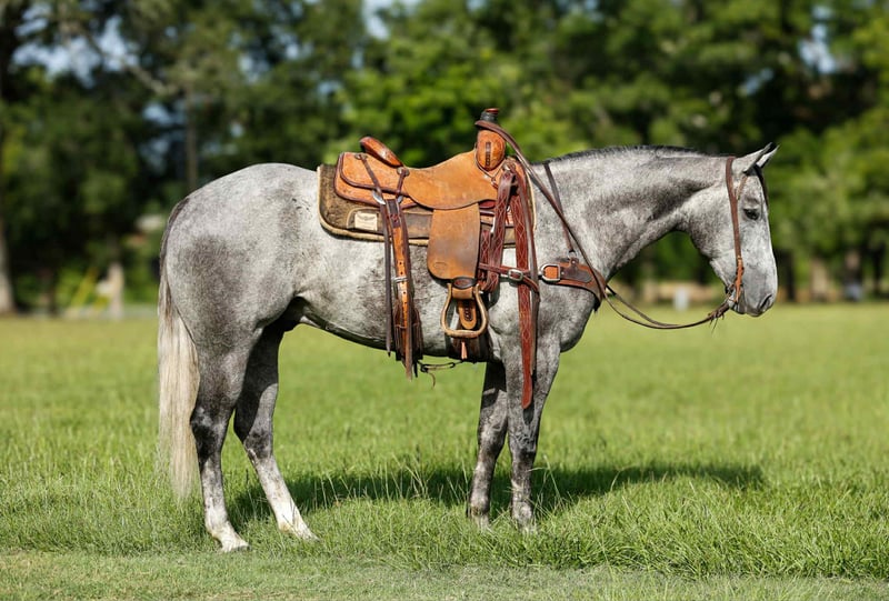 NLINE AUCTION Place your bids at www.PlatinumEquineAuction.com Starting Bid $3500 Auction ends July 27th 2025 Need a new saddle? Check out White Rock Saddles on our website or Facebook LIL KEMO SAHBEE AKA Kemo is a 5 AQHA gray gelding, standing 14.3 hands and stout! Kemo is a tried and true all around gelding! From the arena to the trails, and the ranch, this guy has done and seen it all! Travels out confidently by himself or with other horses. He is remarkably surefooted, you can count on him to pay attention and navigate any terrain you put in front of him. He will go absolutely anywhere you point your reins! He loves water, crosses all type of obstacles and terrain, and has been exposed to all types of wild life, livestock, and machinery! Kemo is great in all types of trail group settings, and will lead the pack or follow! If you enjoy the weekend show life, or love riding in the arena, you can also count on Kemo to be your partner! You’ll love taking him for a spin in the arena! Kemo is a naturally good mover, he carries himself well, has a good stop, easy back up, side passes to open/close gates. His neck rein is solid & true, stays right between your bridle reins. Kemo has also been rode lightly in English and would excel in that direction as well! He would also make a great western dressage partner and has all the buttons to be competitive in the working equitation! He is equipped with the skills and demeanor to excel in a wide array of disciplines. We’ve turned back cattle on him, have ridden him all over the pastures checking yearlings and cow/calf pairs. Kemo is always the pick for Ranch Rodeos as well. Whether you’re eyeing the show pen or seeking a versatile partner to hit the trail with Kemo is the man for you. He has a supple stop, collects on the bridle, side passes, spins, and more! You can do all of the ranch trail maneuvers on him with ease and it does not take an experienced rider, special equipment, or a tons of training to be able to understand and utilize all of his buttons. Kemo is very affectionate and is the first to meet you at the gate, and is guaranteed to become a lifetime member of your family! If you would like to schedule a time to come meet and ride Kemo, or have any other questions Kemo feel free to reach out! Rachel TR Livestock with or to make a Buy It Now Offer, 605-370-4644. Located in Rusk, TX. ONLINE AUCTION Place your bids at www.PlatinumEquineAuction.com Starting Bid $3500 Auction ends July 27th 2025 Need a new saddle? Check out White Rock Saddles on our website or Facebook