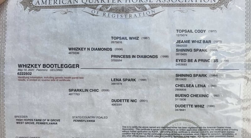 ONLINE-AUKTION Geben Sie Ihre Gebote unter www.PlatinumEquineAuction.com ab. Startgebot $3500 Die Auktion endet am 29. Dezember 2024. Brauchen Sie einen neuen Sattel? Schauen Sie sich White Rock Saddles auf unserer Website oder Facebook an! A Whiskey Bootlegger ist ein 2020er AQHA-Palomino-Wallach mit einer Größe von 15 Händen, einem tadellosen Stammbaum und einer vielseitigen Ausbildung. Dieser Wallach stammt von dem großartigen Whizkey N Diamonds ab, einem bewährten Erzeuger in der Reining-Industrie, und hat das genetische Potenzial, in mehreren Disziplinen zu brillieren. Mit seinem auffallend goldenen Fell und seinem kräftigen, korrekten Körperbau ist er nicht nur ein Blickfang, sondern auch für Leistung gebaut. Mit seinen vier Jahren ist er im besten Alter, um sich in die von Ihnen gewünschte Richtung weiterzuentwickeln. Mit 16 Monaten professionellem Reining-Training ist dieser Wallach mit den Grundlagen der hohen Leistung bestens vertraut. Er ist weich in der Zäumung, reagiert gut auf die Schenkelhilfen und zeigt eine hervorragende Stopp-, Spin- und Rollback-Mechanik. Er könnte ohne weiteres wieder in den Reining-Show-Pen gesteckt werden, doch sein Fundament macht ihn auch zu einem natürlichen Kandidaten für Ranch-Versatility- oder Ranch-Riding-Events. Seine ausgeglichenen Gänge, seine Trittsicherheit und sein ruhiges Auftreten machen ihn zu einem Vergnügen, egal ob in der Arena oder auf dem Trail. Neben seiner Leistungsbereitschaft ist dieser Wallach ein echtes Familienpferd. Er ist sanftmütig und gutmütig und wurde bereits von Reitern aller Altersgruppen und Erfahrungsstufen geritten, was ihn zu einem sicheren und angenehmen Partner macht. Er wurde im ganzen Land ausgiebig geritten und hat dabei seine Zuverlässigkeit in verschiedenen Umgebungen und seine Bereitschaft, sich neuen Herausforderungen zu stellen, unter Beweis gestellt. Egal, ob Sie Bäche überqueren, durch Wälder reiten oder über offene Weiden reiten, dieser Wallach ist ruhig, vertrauenswürdig und will gefallen. Neben seiner Vielseitigkeit unter dem Sattel ist es einfach eine Freude, mit diesem Wallach zusammen zu sein. Sein ruhiges und sympathisches Auftreten macht ihn zu einem der beliebtesten Pferde im Stall. Er ist leicht zu handhaben, zu verladen und zu ziehen, passt sich gut an neue Situationen an und lebt sich schnell in ungewohnter Umgebung ein. Ganz gleich, ob Sie einen Partner für Wettkämpfe, ein zuverlässiges Ranchpferd oder ein familienfreundliches Wanderreitpferd suchen, dieser Wallach ist eine vielseitige Option mit dem Training, dem Temperament und der Abstammung, die ihn auszeichnen. Für weitere Informationen rufen Sie bitte an oder schreiben Sie Broken S Equine Beau 573-303-4087. ONLINE-AUKTION Geben Sie Ihre Gebote unter www.PlatinumEquineAuction.com ab. Startgebot $3500 Die Auktion endet am 29. Dezember 2024. Brauchen Sie einen neuen Sattel? Schauen Sie sich White Rock Saddles auf unserer Website oder Facebook an!