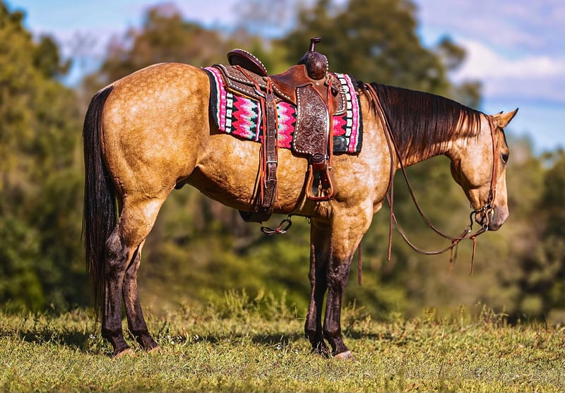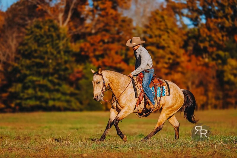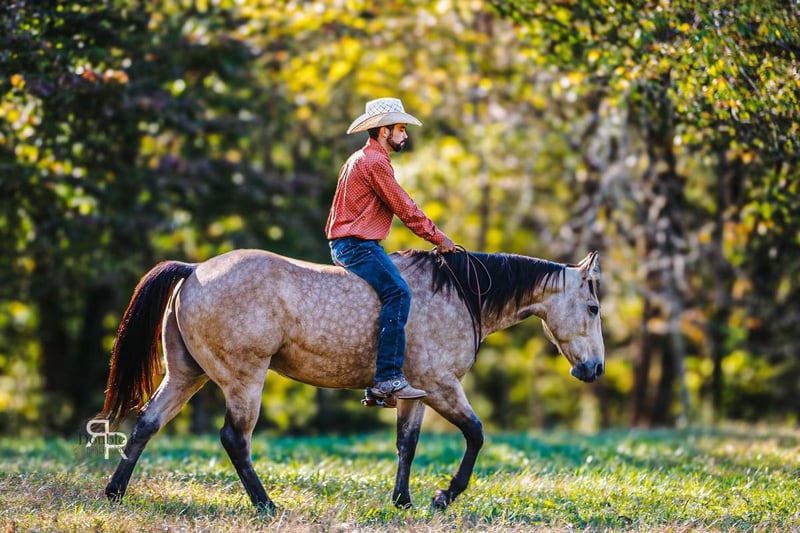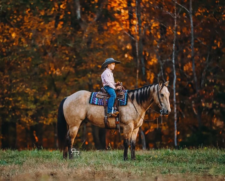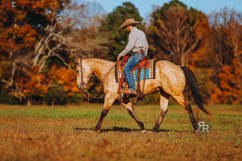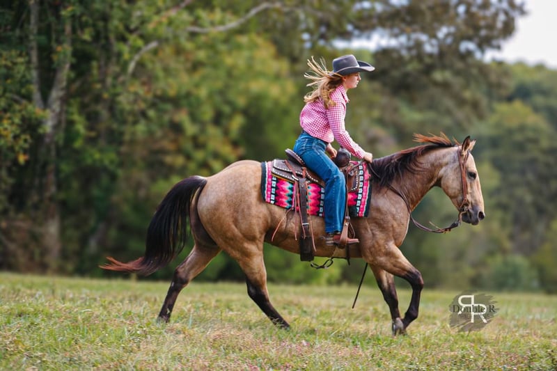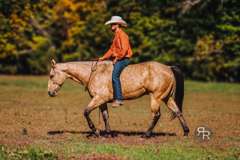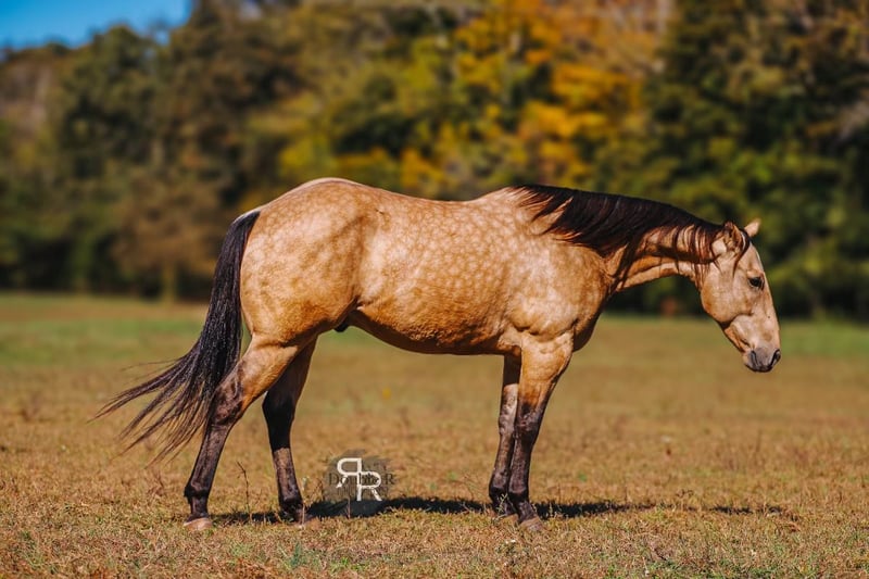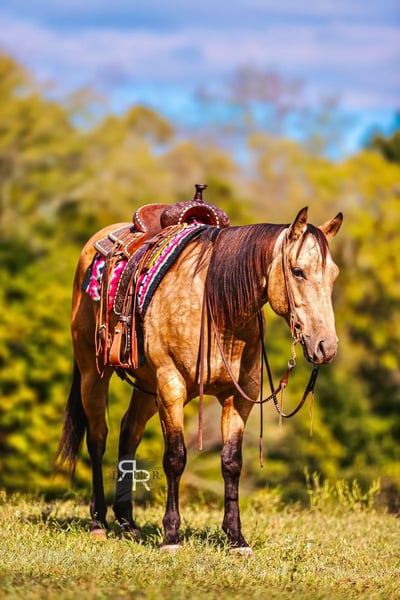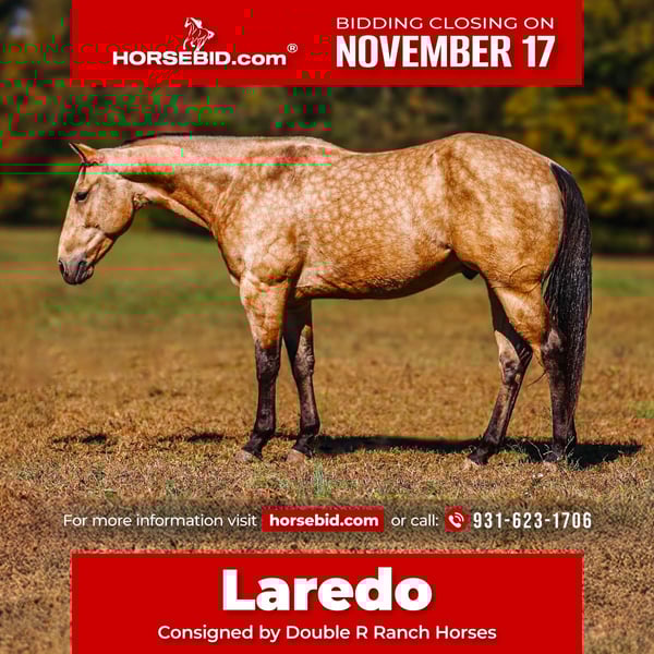 🎲𝓽𝓱𝓮 𝐑𝐈𝐃𝐄𝐑'𝐒 𝓒𝓱𝓸𝓲𝓬𝓮🎲 Happening now thru MONDAY | NOVEMBER 17th - Available EXCLUSIVELY on HorseBid's website! For more details and to register visit: www.Horsebid.com CONSIGNOR CONTACT: Double R Ranch Horses 931-623-1706 LOCATION: Lyles, TN BREED: Quarter Horse REGISTERED: Yes REGISTERED NAME: Flinging Lemons COLOR: Buckskin HEIGHT: 15.1 AGE: 5 GENDER: Gelding “Laredo” The Buckskin Everyone Loves! (And needs) If you’ve been searching for a safe, steady and easy to ride partner, the kind you can throw a saddle on any day of the week, point in any direction, and know you’re in good hands, meet Laredo. This golden dappled buckskin AQHA gelding is as easy on the eyes as he is steady in the saddle. He’s built right, and absolutely gorgeous- with a friendly, gentle personality that makes him so enjoyable to be around. Registered AQHA registered name “Flinging Lemons” with some impressive bloodlines, this 5 year old gelding stands 15.1 hands tall, has plenty of real-world experience, and a very good mind. Laredo is naturally friendly and loves attention, he is always ready to greet you at the gate. If you enjoy being around horses that are “in your pocket” you’ll love him. He has the kindest eyes and the sweetest soul, and he is ready to be your best bud. He’s quiet and patient on the ground, stands calmly to groom, saddle, and mount, and has excellent manners. Gentle and quiet, he loads, ties, bathes, and stands for the vet and farrier without fuss. He rides soft in the bridle, responds to leg cues, and is smooth and enjoyable. He has been trained to side pass over to pickup his rider on the mounting block as well, which is handy! Laredo has been a trusted trail partner with us. He’s safe, solid and has a good mind. He’s been my go-to choice when I need to pack a kid on board. He’s gone on overnight camping trips, where he crossed deep water, climbed steep rocky hills, and even explored miles of trails with our little one-year-old tucked in the baby carrier. He’s sure-footed, calm, and confident. New scenery doesn’t bother him, creeks, passing wildlife, or navigating through rough terrain, he handles it all with patience and a steady step. It’s easy to relax and enjoy the ride on a seasoned horse like him. You’ll feel at ease on his back! I’ve even hopped on him bareback in the dark and loped him off down the road, and he just calmly carries on like it’s nothing unusual for him. We have put him in about every situation you can think of, and he just proves himself rock solid again and again. He’s also been started on the head side, done a little bit of breakaway, lightly started on barrels, and used for ranch work including pasture roping, loading, doctoring etc. Laredo is versatile, well rounded, adaptable, and ready to succeed in whatever direction his next owner wants to take him. Even if that’s a best friend in horse form! It’s hard to find everything Laredo brings to the table- all in one horse. He has a To sum it all up, He’s just plain good. And in today’s world, that’s hard to find. Laredo passed his PPE by Equine Vet Todd Co Animal Clinic with flying colors! Located in Lyles, TN 📞 Contact Rachel Vick at 931-623-1706 to learn more or schedule a visit to meet Laredo in person.