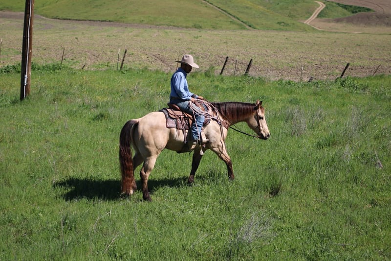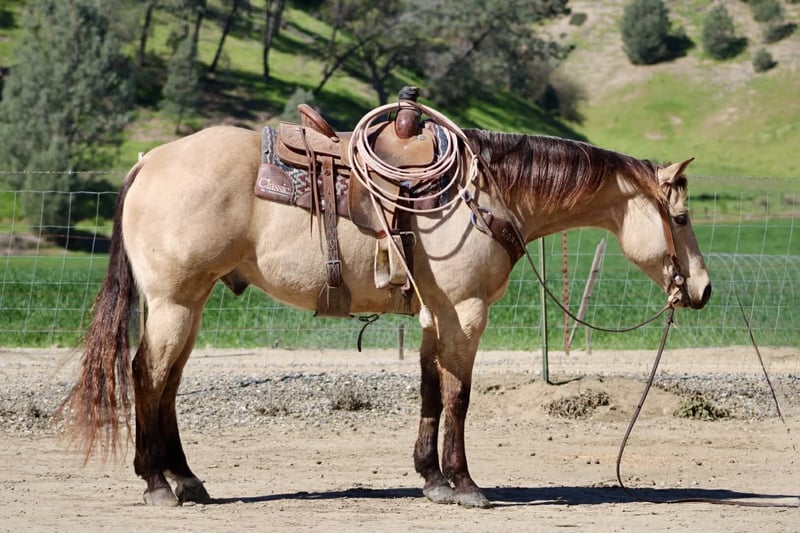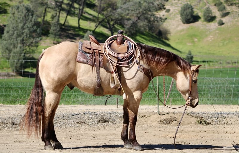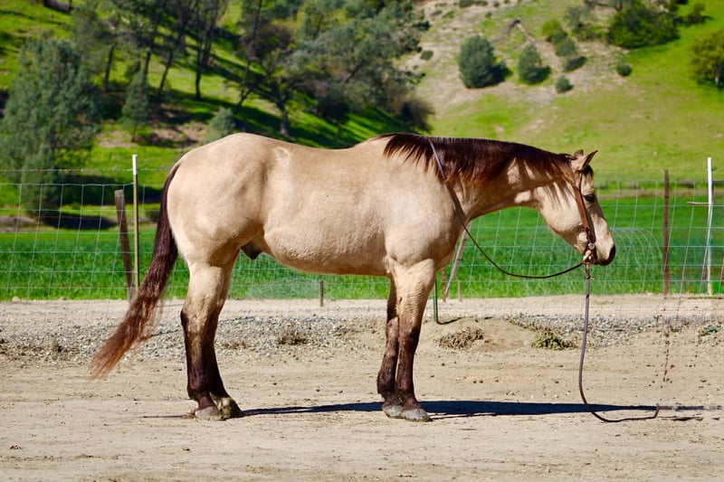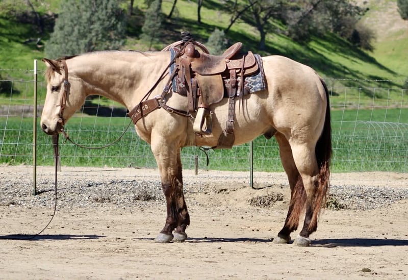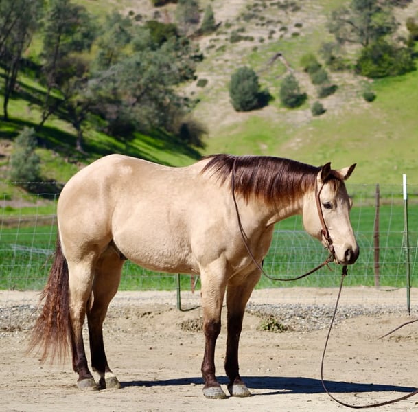 "AVAILABLE ON ONLINE HORSE AUCTION AT www DOT PlatinumEquineAuction DOT com BIDDING OPEN NOW thru SUNDAY | MARCH 22ND! *Final price will be determined on auction site* CONSIGNOR CONTACT INFO: Longhorn Ranch 831-537-1915 LOCATION: Paicines, CA Spooks Lil Gallo 2020 Buckskin Gelding • 15.1 Hands. Stout built Offered as a client consignment, Spooks Lil Gallo is a striking buckskin gelding that beautifully combines pedigree, presence, and a solid foundation. This gelding’s breeding immediately sets him apart. He is sired by Lil Gallo, a son of the legendary Gallo Del Cielo (Rooster), one of the most influential sires in the performance horse industry. Rooster offspring are widely recognized for their athleticism, trainability, cow sense, and longevity. His pedigree carries the influence of industry-defining horses including Peppy San Badger and Doc’s Starlight — cornerstone bloodlines known for producing exceptional minds, natural ability, and proven performance talent. On the bottom side, he traces to Spooks Gotta Whiz, a stallion synonymous with brilliance, style, and elite-level performance success. This powerful combination of cow horse and reining bloodlines provides Spooks Lil Gallo with the genetic foundation for versatility and unlimited potential. Beyond the papers, Spook is a horse that is easy to appreciate every day. In the arena, Spook is fluid, broke, and a pleasure to ride. He travels collected, soft, and smooth, carrying himself with balance and correctness. His transitions are quiet and relaxed, and he moves with a natural cadence that makes him both comfortable and visually appealing. He lopes off willingly, stays soft in the bridle, and responds nicely to his rider. Spook shows smooth stops and willing turnarounds, reflecting the quality of his foundation and training. His presence, movement, and overall style make him a true show stopper each time you ride. Outside the arena, Spook continues to impress. He has been hauled on numerous trail rides and handles new environments with a thoughtful, steady mindset. He is naturally curious yet cautious, taking in his surroundings with awareness and good judgment. Whether riding out alone or with company, he remains willing, manageable, and dependable. Spook is currently started on obstacles and continues to progress with a willing, honest attitude. He has been introduced to tarps, flags, balls, and various challenges. While he may show some initial sensitivity, he remains sensible and settles in with reassurance and consistency, demonstrating a trainable and responsive nature. In daily handling, Spook is exactly the type everyone hopes for. He hauls well, ties quietly, bathes easily, and stands respectfully for the farrier. He is super sweet, friendly, and genuinely enjoyable to be around, with a kind demeanor that makes him a pleasure in the barn. With his exceptional pedigree, quality movement, and versatile foundation, Spooks Lil Gallo offers opportunity in many directions. Whether your goals include trails, ranch work, performance events, or continued development, this gelding has the tools and mindset to excel. For additional information, or questions: Longhorn Ranch Dina Paicines, California 831-537-1915