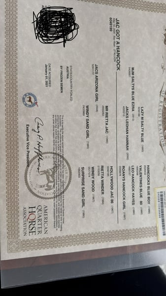 Almost 6-year-old Hancock-bred Quarter Horse gelding Born: May 10, 2020 Bay Roan Height: approximately 15.5 hh Sire: MJM Saltys Blue Ezra Dam: Jacs Arizona Girl *Solid basic training *Never been sick, lame, or had any issues *Regular dental care *All vaccinations up to date *Regular deworming *Consistently shod and trailer-friendly, calm in the stable and at the blacksmith Jac is a nearly 6-year-old Hancock-bred Quarter Horse gelding. He was started at 3.5 years old, has a solid foundation, and is completely unspoiled. In the field, Jac is reliable and easily handled alone. In the riding arena and indoor school, he is attentive, eager to learn, and responds delicately to his rider’s aids. He is well-behaved and shows no vices. However, he is not suitable for beginners or children. He is ideal for the ambitious leisure rider and can also be further developed in higher-level recreational or show riding. The sale is purely due to personal and professional reasons, as I currently cannot give him the attention he deserves due to lack of time. Upon request, his Equiflex saddle can be purchased together. Serious inquiries are welcome, and I can send additional photos and videos. Location: 89537 Price: €11,900 negotiable Contact: 0170-4828343 Preferably via WhatsApp