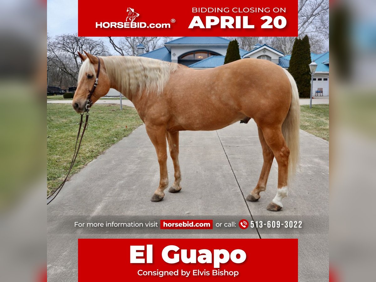 ⚜️𝐭𝐡𝐞 𝓔𝓵𝓲𝓽𝓮 𝐒𝐩𝐫𝐢𝐧𝐠 𝐂𝐥𝐚𝐬𝐬𝐢𝐜⚜️ Happening now thru MONDAY | APRIL 20th - Available EXCLUSIVELY on HorseBid's website! For more details and to register visit: www.Horsebid.com CONSIGNOR CONTACT: Elvis Bishop 513-609-3022 LOCATION: Lebanon, OH BREED: AQHA REGISTERED: Yes REGISTERED NAME: Mr Peppy Sandrift COLOR: Palomino HEIGHT: 15.1 AGE: 6 GENDER: Gelding El Guapo is a once in a lifetime horse that would fit anybody’s program from a novice rider to a professional horseman. He is such a joy to ride whether you want to use him for ranch work, team roping, trail riding, mounted shooting or sorting or anything else, he will check all the boxes! He is gentle for anybody and anyone that can hold the reins can ride him! He has a great handle and a big stop! He is the same every time you get on him and will go wherever you point him and he will never get hot or prancy! He has absolutely no buck in him at all and he is 100 percent sound and has no bad habits, and you will love him when you get him home! I’ll totally stand behind this horse! Make sure you watch the video of him until the end it’s definitely worth it!