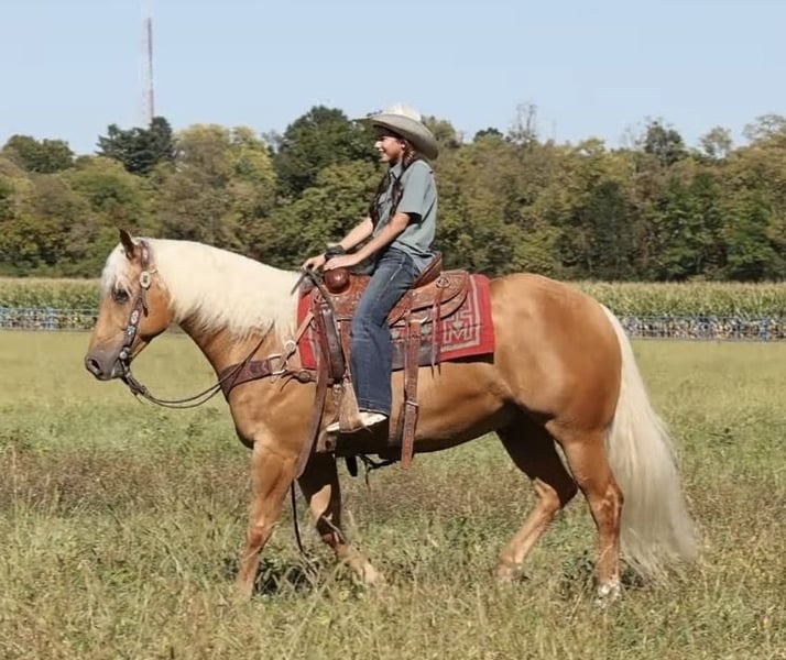 El Guapo, potro de 6 años, de 15.1 manos, gelding palomino de AQHA