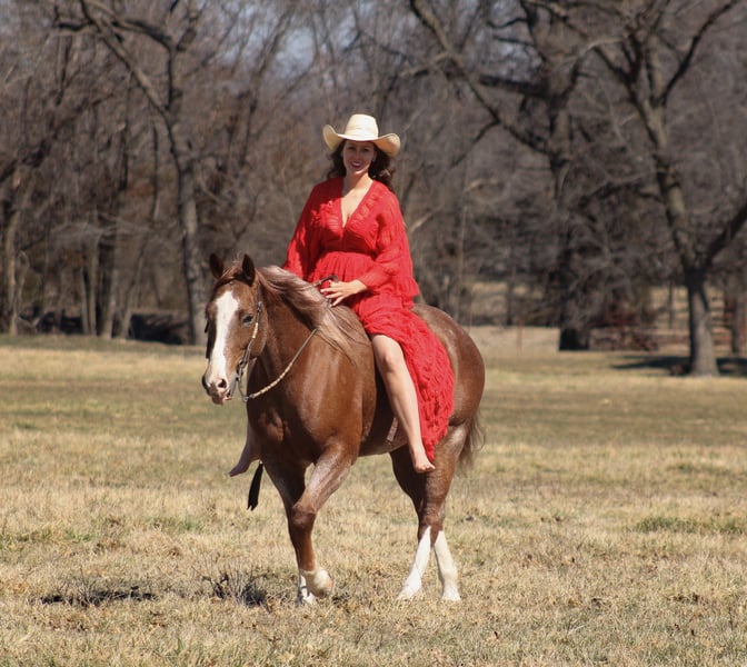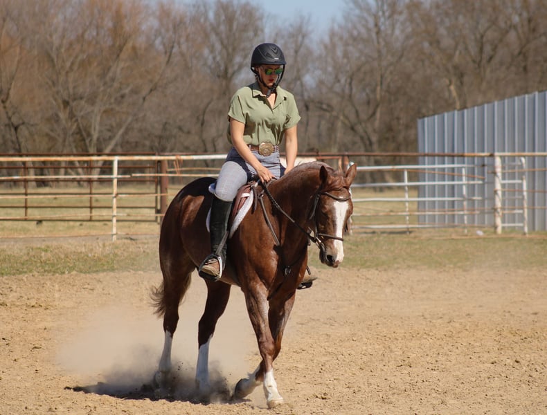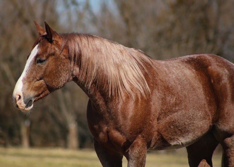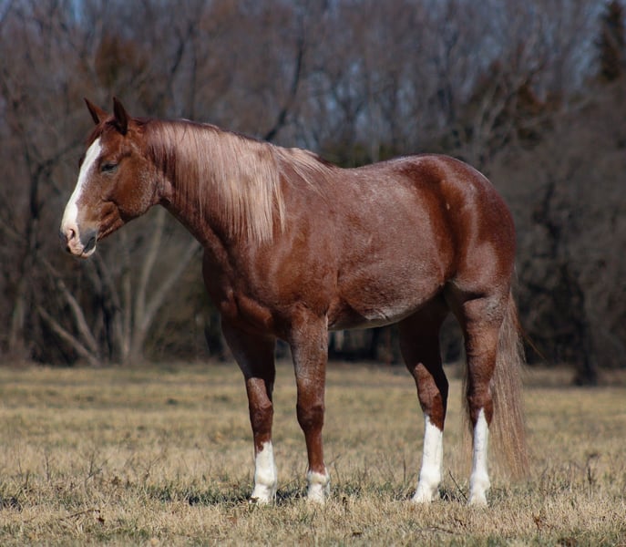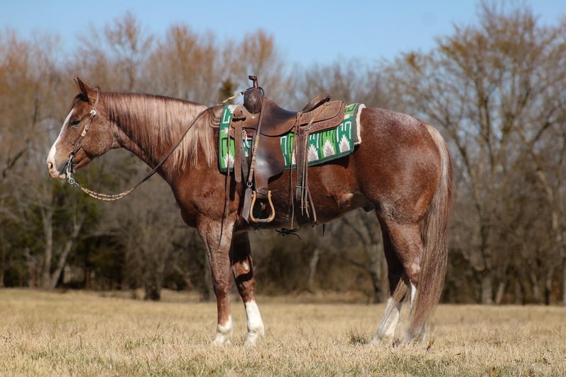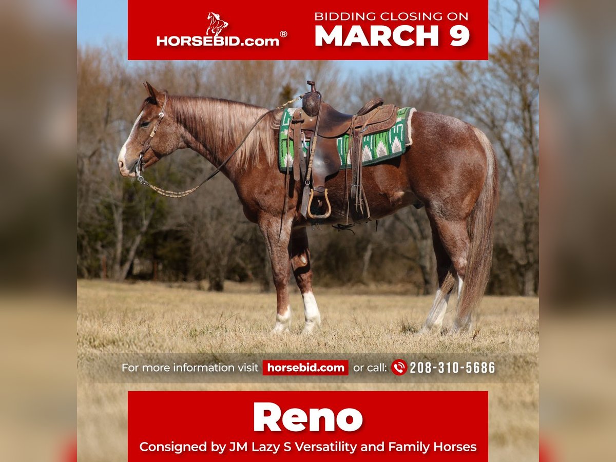 Reno, caballo de 6 años, 15.1 manos, gelding roan rojo, de raza AQHA