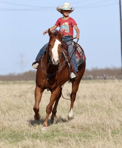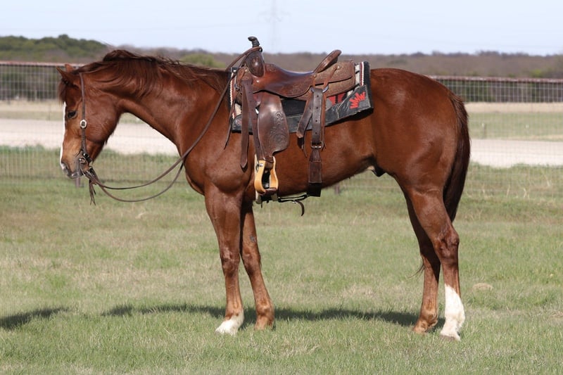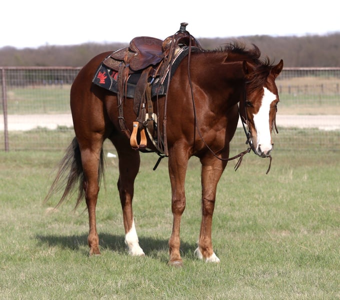 Tango Mango, potro de 6 años, 15.2 manos, caballo de raza Quarter Horse, semental de color alazán.