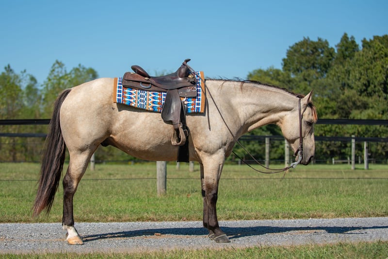 ♦️ 𝐭𝐡𝐞 𝐀𝐌𝐄𝐑𝐈𝐂𝐀𝐍 𝓕𝓪𝓵𝓵 𝓒𝓵𝓪𝓼𝓼𝓲𝓬 ♦️ Happening now thru MONDAY | OCTOBER 20th - Available EXCLUSIVELY on HorseBid's website! For more details and to register visit: www.Horsebid.com CONSIGNOR CONTACT: Blue Ridge Performance Horses 608-540-8038 LOCATION: Mayfield, KY BREED: AQHA REGISTERED: Yes REGISTERED NAME: JT MR DOC BAR ONE COLOR: Buckskin HEIGHT: 15.2 AGE: 5 GENDER: Gelding Introducing Captain, a stunning 5-year-old flashy buckskin gelding with old school breeding going back to the best, such as Tequila Hickory and Doc Bar! Captain has been in professional training for the past 2 years learning the reining maneuvers and ranch riding. He has also been used for giving lessons based off his gentle nature; furthermore, Captain has shown in ranch riding and conformation events with points in his name! Showcasing his solid spin, big stop, and easy changes. Captain is very responsive to subtle cues, moving off your seat with ease. Standing at 15.2h with a LOT OF BODY and BIG BONE, Captain would make an amazing, reliable family trail deluxe / ranch show horse or even a header, having been roped off of in the past. With no bad habits, vices, or blemishes, Captain offers a clean slate for his next rider. Good with farrier, vet, loading and backing out of a trailer, and will stand tied all day. Contact Billi at 608-540-8038 for more information.