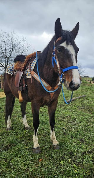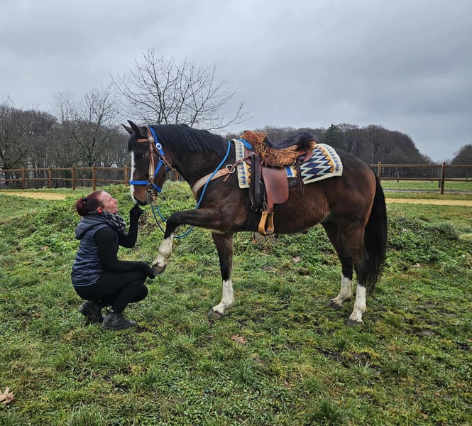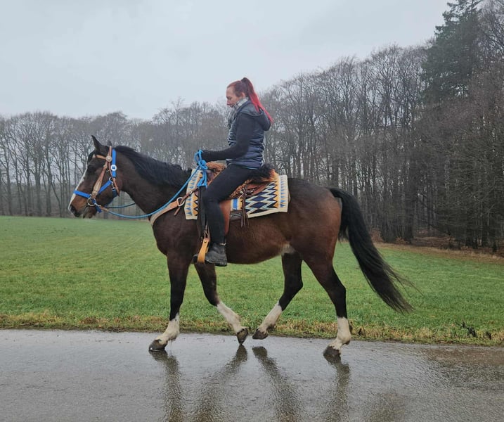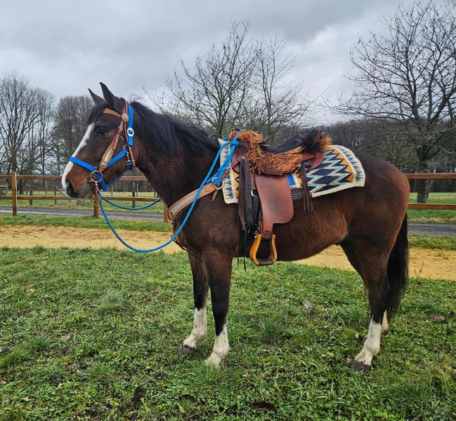 Quarter-Mix Wallach – brav, gelassen & zuverlässiger Freizeitpartner THOR Alter: 6J. Stockmaß: ca. 1,57 m Preis: 6.900.- AKU: Vorhanden ✨ Beschreibung: Dieser hübsche Quarter-Mix Wallach überzeugt durch sein ruhiges, freundliches Wesen und seine große Zuverlässigkeit. Im täglichen Umgang ist er super brav, unkompliziert und angenehm im Handling. Unter dem Sattel zeigt er sich sehr nett zu reiten, kooperativ und ehrlich. Er vermittelt seinem Reiter ein gutes Gefühl und macht einfach Spaß. Besonders für Ausritte und Wanderritte ist er bestens geeignet – er ist geländesicher, ausgeglichen und genießt lange Strecken ebenso wie entspannte Ritte. Ein idealer Partner für alle, die ein verlässliches Freizeitpferd suchen, mit dem man stressfrei Zeit verbringen und die Natur genießen kann. Kein Sportpferd, sondern ein ehrlicher Kumpel fürs Leben. Ideal für: Freizeitreiter, Wanderreiter oder Wiedereinsteiger, die ein braves, entspanntes und zuverlässiges Pferd suchen. Unsere Pferde werden regelmäßig: – entwurmt – vom Schmied betreut – osteopathisch kontrolliert Unser Service: ✅ 3 Monate Umtauschrecht ✅ Proberitt: 35 €, jedes weitere Pferd 25 € (beim Kauf am selben Tag angerechnet) ✅ 100 € Sofort-Rabatt bei Abholung/Transport am gleichen Tag ✅ Persönliche & ehrliche Beratung Transport kann auf Wunsch günstig organisiert werden Anfragen bitte ausschließlich telefonisch: 0171 – 4001968 täglich erreichbar von 8–20 Uhr ⚠️ Keine E-Mail oder WhatsApp ⚠️ Alle Angaben ohne Gewähr