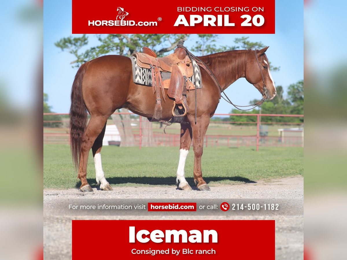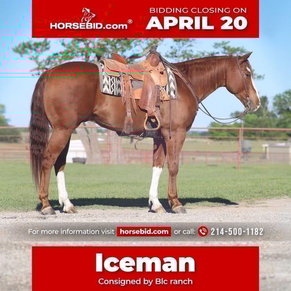 ⚜️𝐭𝐡𝐞 𝓔𝓵𝓲𝓽𝓮 𝐒𝐩𝐫𝐢𝐧𝐠 𝐂𝐥𝐚𝐬𝐬𝐢𝐜⚜️ Happening now thru MONDAY | APRIL 20th - Available EXCLUSIVELY on HorseBid's website! For more details and to register visit: www.Horsebid.com CONSIGNOR CONTACT: Blc ranch 214-500-1182 LOCATION: Grand Saline, TX BREED: Quarter REGISTERED: Yes REGISTERED NAME: DEEDASHING GUY COLOR: Sorrel HEIGHT: 15.3 AGE: 6 GENDER: Gelding Iceman is a super fancy gelding. Standing 15.3 hands tall weighing around 1200 pounds. He is built to be the ultimate athlete. Don’t forget about his pedigree , Ice is sired by the great Frenchman’s Guy ( an all time performance horse leading sire) and he’s out of a great mare on the bottom side. Ice is a finished head horse and is a money earner himself of $6,729 with 6 AQHA points. He was the 2024 Texas Best Rope Horse Spring Judged Open, Int Open and Round 2 Heading Futurity Champion. Two time AQHA World Junior Heading L2 qualifier. He has all the buttons and capability of getting you to the pay window at all numbers of ropings. Ice has a lot of run and a big move making him very easy to handle cattle. You are not limited to the roping pen though. Ice has seen the outside world on the ranch and lights of town. Too be such a top performance horse he has the smoothest long trot with a rocking chair loose reign lope. We’ve rode him everywhere. He is handy broke and will willingly put in a days work. Ice does have some cow to him, he’s blast to sort on, and drag in the branding pen. Take a stroll on the trails and he will go where you point him. Ice is a very easy keeper and doesn’t require every day riding. Big strong legs that are clean and blemish free. This gelding checks all the boxes from the right age to the right size. Add this royally bred individual to your string. Sound in every way. He will be a pleasure to have in any barn and will be your number one pick to ride every time.