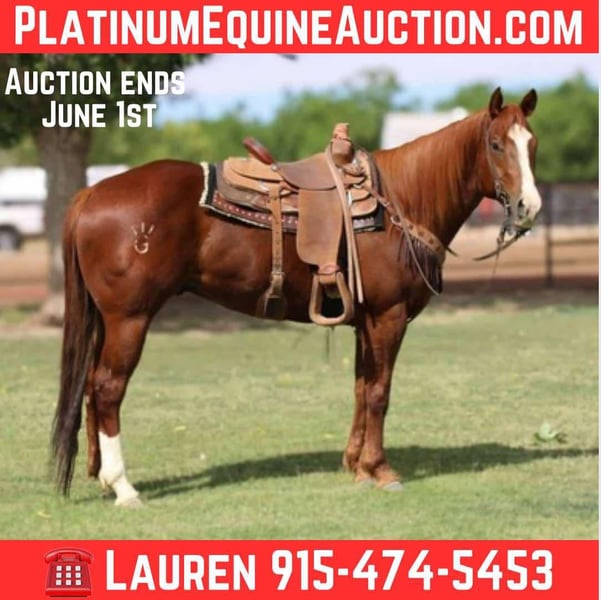 ONLINE AUCTION Place your bids at www.PlatinumEquineAuction.com Starting Bid $3500 Auction ends June 1st, 2025 Need a new saddle? Check out White Rock Saddles on our website or Facebook! HOT DAMN IM BLAZIN aka Hotty Is a fancy 5 yr old 15.3h tall, registered quarter horse gelding. His pedigree goes back to Firewater Flint on the top side and Steakin Six on the bottom. He’s been a joy to have in our program we’ve done a little bit of everything with him. He has been used on the ranch at a young age he has had lots of outside miles in rocky country and sandy hills, he’s extremely sure footed and knows how to travel in tough terrain. We also do a lot of arena riding. He’s a super solid head horse, he’s good in the box, he’ll score like a rock. Really easy to get along with. We have broke in lots of fresh cattle and hauled him to lower number jackpots. He’s been started on barrels, he’s really soft and is learning the pattern. He can make someone a super nice barrel horse he’s been started right and is ready to go on with. Hotty has the mind and temperament to be a high caliber barrel and head horse. He is a super smooth traveler and is a comfortable ride. He’s been the horse we use for everything he’s super well rounded and has been an important horse in our program . He has a great personality he wants to be your friend. Very easy to get along with. He’s an all around safe gelding that would fit anyones family or program. Hotty is easy to catch, saddle, shoe, load, unload and ties. He will ride through water, rides in traffic, good with dogs, bikes, other animals. He’s pretty laid back and easy going, He’ll be a a standout anywhere he goes. He is bred to fly and will take you to the pay window. Hotty can be your next performance horse! He sells sound. Please call for any questions you may have about Hotty thank you Contact Lauren Lara 915-474-5453 Located in El Paso, TX. ONLINE AUCTION Place your bids at www.PlatinumEquineAuction.com Starting Bid $3500 Auction ends June 1st, 2025 Need a new saddle? Check out White Rock Saddles on our website or Facebook!