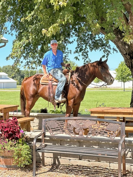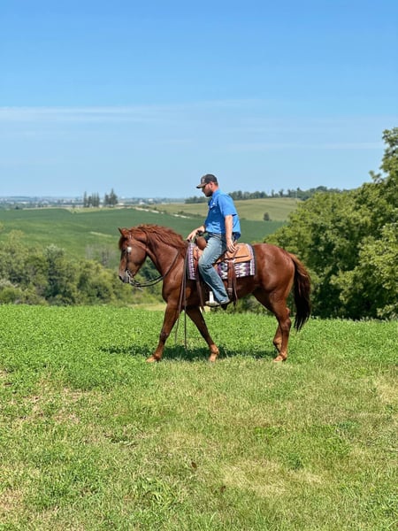 ONLINE AUCTION Place your bids at www.PlatinumEquineAuction.com Starting Bid $3500 Auction ends September 29th, 2024 Need a new saddle? Check out White Rock Saddles on our website or Facebook! Ruby is a 4 year old 16hh solid made cross bred mare. Ruby is out of a quarter horse mare and a Belgian stud. Ruby has been extensively trail rode and overnight camped on throughout the Midwest. She is very easy to get along with, loves attention and easy to catch. Ruby offers a nice flowing trot and rocking chair lope. She is good for both the vet and farrier. Ruby does good in a box stall or turned out. She offers a can do attitude with a nice handle. Ruby has checked fence all summer and been coonhunted on some this spring. Ruby has ponied and halter broke alot of colts. Loads and unloads like one should. Tacks up the same every ride. Ruby would excile in English or western. Soft in the bridle and ready to go on with! Sound and up to date on all cares. For further information please reach out to Dylan Landon 765-553-2527. Located in Van Horne, IA ONLINE AUCTION Place your bids at www.PlatinumEquineAuction.com Starting Bid $3500 Auction ends September 29th, 2024 Need a new saddle? Check out White Rock Saddles on our website or Facebook!