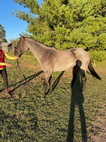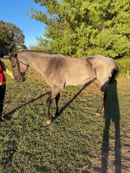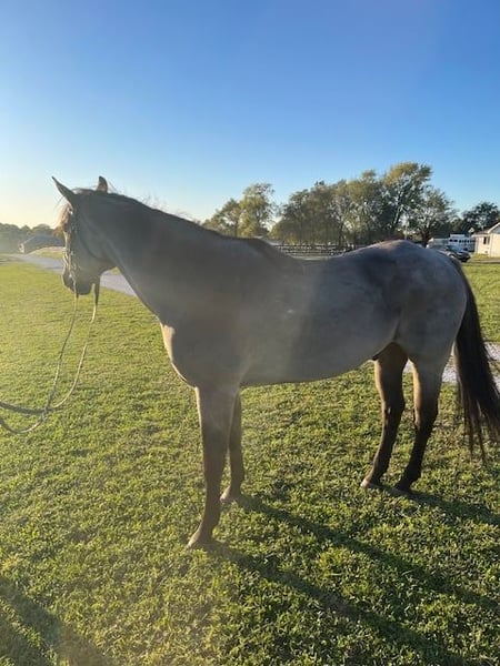 ONLINE AUCTION Place your bids at www.PlatinumEquineAuction.com Starting Bid $3500 Auction ends November 23rd, 2025 Need a new saddle? Check out White Rock Saddles on our website or Facebook Up for grabs is Big Blue, a handsome 5-year-old true blue roan draft cross gelding standing 16 hands tall – the kind of horse that’s built tough and ready for whatever you throw at him. With his striking blue roan color and sturdy draft cross frame and fine head, he’s got the looks and the muscle to handle trails, ranch work, the show arena, or just fun easy riding. He’s as straightforward and dependable as they come. Big Blue’s got a calm, easy-going personality – he stands quietly for all the things from farrier work to tacking and vet work, and he loads real easy as shown in the video. Out on the trails, he’s steady as can be and crosses scary old bridges (see video), etc., with ease. He has a comfortable trot and a very smooth, comfortable, easy lope. Nice stop and back. He’s gentle enough for the kids, grandparents, and neighbors that you like, but also has the drive for more experienced riders looking to put miles on him. He’s built stocky and sound with good bone. Big blue is a versatile horse that’s fun to own and easy to get along with. Located exactly in the middle of the country in the Ozark mountains in Springfield, Missouri. For more info contact Scott Montgomery 417-827-3866. ONLINE AUCTION Place your bids at www.PlatinumEquineAuction.com Starting Bid $3500 Auction ends November 23rd, 2025 Need a new saddle? Check out White Rock Saddles on our website or Facebook