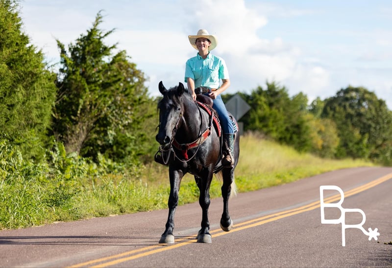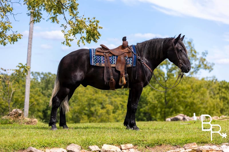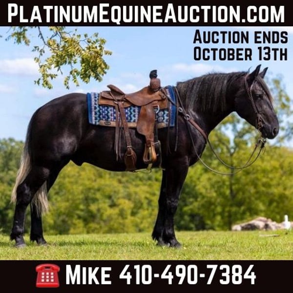 ONLINE AUCTION Place your bids at www.PlatinumEquineAuction.com Starting Bid $3500 Auction ends October 13th, 2024 Need a new saddle? Check out White Rock Saddles on our website or Facebook! Chubs…This absolutely stunning hunk will make you happy everyday. He is a steel grey Percheron./Quarter Horse cross . Stands a big 16.1 and a half hands tall at 4 years of age. Chubs has been a perfect gentleman since the first day he came into our program. This guy has a loving puppy dog personality. He is Lindsey Lee Blum favorite horse in our sale program to ride everyday.Will put his head in your lap like a puppy to be groomed everyday. Chubs is very easy to catch and comes running to the gate every morning. He rides well western and english in the arena with automatic lead changes. We have started him over fences and cross country. Which he thoroughly enjoys and is very brave. We can see a lot of fox hunting in his future. Chubs is what they call a trail horse specialist. There is not one obstacle he will not do. He rides very soft and easy in the arena and on the trail . Chubs has won several obstacles challenges he fears nothing. Very easy to manage ,shoe and care for around the barn . He is ready to go become someone’s horse of a lifetime. Totally UTD on farrier,dental, vetting with all necessary paperwork and vaccines ready to go. Comes with a pre-purchase evaluation from our licensed veterinarian. We have professional shipper that can haul nationwide. ‼️Call Mike at Beaver Ranch for more information 410-490-7384…..We encourage customers to come try our horses. You won’t be disappointed. Located in Mountain Grove, MO. ONLINE AUCTION Place your bids at www.PlatinumEquineAuction.com Starting Bid $3500 Auction ends October 13th, 2024 Need a new saddle? Check out White Rock Saddles on our website or Facebook!