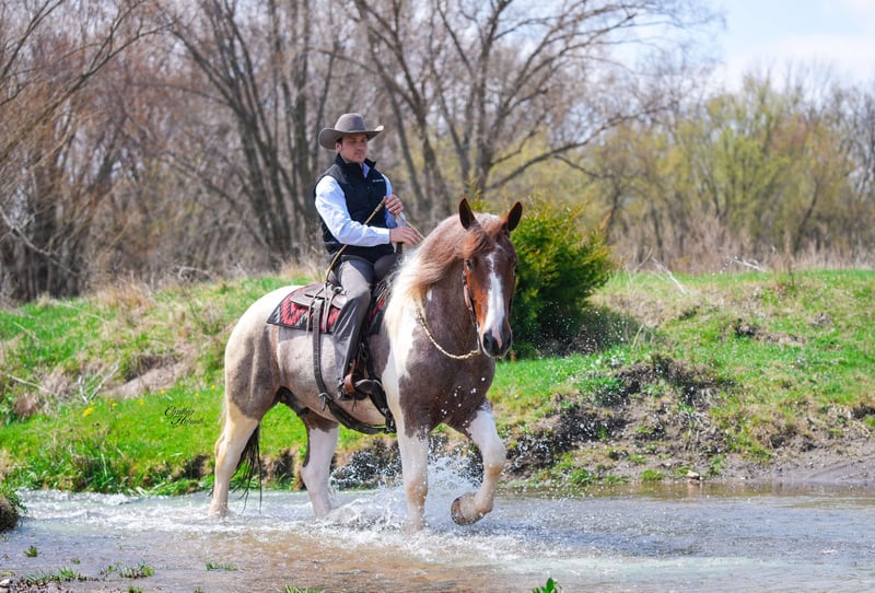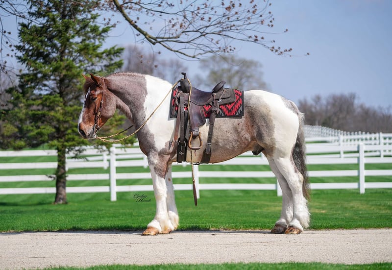 ONLINE AUCTION Place your bids at www.PlatinumEquineAuction.com Starting Bid $3500 Auction ends May 18th, 2025 Need a new saddle? Check out White Rock Saddles on our website or Facebook! Spirit is a 5 yr old, stunning red roan tobiano, draft cross gelding. He stands a magnificent 16.1 hands tall and weighs 1400 lbs. Spirit is an all around horse, he has done Christmas rides in multiple towns. He will ride out in a group or be great by himself. He crosses water, logs, down the busy highway, good in traffic, trails, been out after dark. Spirit is well trained to ride English or western. He also drives single or double. If you are looking for a horse that is big enough for the adults, and quiet enough for the children, definitely check him out. He has excellent ground manners, easy to catch, groom, bathe, stands good for the farrier, hauls and stalls great! Spirit can be turned out with other horses or stalled by himself. We have truly enjoyed every minute of Spirit and are excited to find him the perfect home where he can continue to shine. Horses like him don’t come around every day! Contact Rudy at R & R Regal Equine: 319-334-8649 to schedule a time to meet him, FaceTime , or just chat more about this once in a a lifetime horse! Located in Independence IA. ONLINE AUCTION Place your bids at www.PlatinumEquineAuction.com Starting Bid $3500 Auction ends May 18th, 2025 Need a new saddle? Check out White Rock Saddles on our website or Facebook!