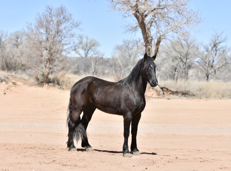ONLINE AUCTION Place your bids at www.PlatinumEquineAuction.com Starting Bid $3500 Auction ends June 16th, 2024 Need a new saddle? Check out White Rock Saddles on our website or Facebook! Cash is a striking 4-year-old Friesian gelding standing at 16.2 hands tall. With a sleek, black coat that glistens in the sunlight, Cash commands attention wherever he goes. His gentle, expressive eyes reveal a curious and intelligent nature, eager to explore new trails and adventures. Having been extensively trail ridden, Cash is a seasoned explorer, confidently navigating through varied terrain with grace. Not only is cash a seasoned trail companion, but he is also proficient in the art of driving. His powerful build and sturdy frame make him a natural fit for harness work, whether pulling a carriage or navigating the open road. With a calm demeanor and responsive cues, Cash is a joy to drive, effortlessly maneuvering through obstacles with precision and finesse. Whether under saddle or in harness, Cash’s versatility and gentle disposition make him a cherished partner for riders and drivers alike. In addition to his impressive skills, Cash possesses a warm and affectionate personality, forming strong bonds with those who earn his trust. His gentle nature and eager-to-please attitude make him a favorite among riders and handlers alike. Cash does great in a stall or out on pasture and gets along great with other horses. Cash sells sound. For more info call or text Beau Slaughter 573-303-4087. Cash can be picked up or previewed at either of our ranch locations in Canyon, TX or Sweet Springs, MO. ONLINE AUCTION Place your bids at www.PlatinumEquineAuction.com Starting Bid $3500 Auction ends June 16th, 2024 Need a new saddle? Check out White Rock Saddles on our website or Facebook!