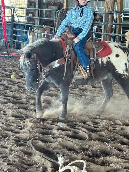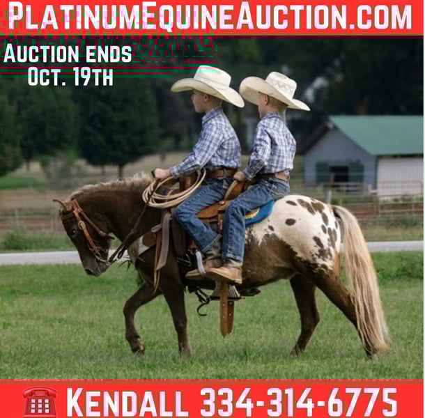 ONLINE AUCTION Place your bids at www.PlatinumEquineAuction.com Starting Bid $3500 Auction ends October 19th, 2025 Need a new saddle? Check out White Rock Saddles on our website or Facebook I couldn’t write a long enough description of this pony to justify how truly good and pure he really is so I’ll do my best to list all the details of this precious animal that’s a huge part of our family. If you’re looking for a trustworthy and forgiving confidence booster partner for your kid this is him! He is one of a kind! My twins trained every part of him. He logged in over 2000 miles on the trailer going to rodeos just this summer with us. Big crowds, loud music ,grand entries, and excited kids that never got to actually pet a pony finally get to make that dream come true to get to pet and ride him. He’s drove out calves & sheep at the rodeos. He is easy to steer and maneuver for little weak arms. Very smooth trot and rocking chair lope. Spots is what dreams are made of. As a parent, safety is so important! He has a total package of insurance policy. He checks all the boxes of exactly what you want a pony to be. Being in the wrong place at the wrong time suits him just fine he aims to please with a huge heart and forgiving nature. Spots has been trained on barrels and poles as well. Ropes, pigs, side by sides, tractors hes seen it all! Very easy to catch, saddle, load ect. Huge puppy dog personality. He has been more miles than most big horses. He lopes around so solid every step of the way he is willing to please anyone that’s on his back no matter the level they are. Zero holes to this pony. He has spent many of nights at the roping pen with us pushing calves up the alley. This will be a bittersweet offer because we know we will never get to train another pony like Spots. It’s now time to turn the reins over and let him go teach a kid what it’s like to have a real life best friend and equine partner. Parents this pony with all my heart is the greatest thing I’ve ever seen don’t miss out on this opportunity to show your child what it’s like to experience a legit ride for many years to come. This pony is easy keeper sound 5 years old (mentally 15 from all the traveling and miles he’s been) He has been there done that baby sitter standing at 39 inches tall requires no special diet or anything to keep him good as he is. He’s been turned out with a mixed herd so he can fit in where ever you put him in the pasture. Contact Kendall Robertson for any more questions at 334-314-6775 location Huntland TN ONLINE AUCTION Place your bids at www.PlatinumEquineAuction.com Starting Bid $3500 Auction ends October 19th, 2025 Need a new saddle? Check out White Rock Saddles on our website or Facebook