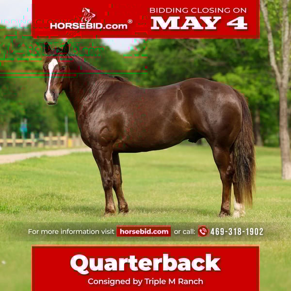 ▪️▫️◾️𝐭𝐡𝐞 𝑴𝒂𝒚 𝐒𝐞𝐥𝐞𝐜𝐭◾️▫️▪️ Happening now thru MONDAY | MAY 4th - Available EXCLUSIVELY on HorseBid's website! For more details and to register visit: www.Horsebid.com CONSIGNOR CONTACT: Triple M Ranch 469-318-1902 LOCATION: Talty, TX BREED: AQHA REGISTERED: Yes REGISTERED NAME: MAGICALLY REGAL COLOR: Sorrel HEIGHT: 15.2 AGE: 6 GENDER: Gelding 🏈 Quarterback is a 6 yr old 15.2 hands tall AQHA Registered Gelding!! He is a big stout full made gelding. This well bred gelding has some of the greats on his papers. Including Cant Kick this Cat. He is an outstanding horse with so much talent and ability. He is at a prime age and ready to go on and do big things. He has an excellent foundation in his training. Really fancy broke with all the bells and whistles. He has been shown the ranch versatility classes, the ranch and the trail courses. He is extremely honest and willing to please. He is naturally quiet and easy going. From his jog to his little silky lope. He packs his head low and level without any fuss or resistance. 🏈 Quarterback got his start in a feed yard being used to move calves. He knows what a hard days work is. He will side pass up to gate so you can open and close them on him. He has been roped off and used to doctor. He would make an excellent head horse. He has the size and ability for it. 🏈 You can ride Quarterback in or out of the arena. He does amazing out on the trails and riding through town! He is not at all spooky or bothered by things like wildlife or common things one might see on a trail ride or in town. Like traffic, bikes, motorcycles, lots of people. He quiet riding anywhere in the pack and he stands tied at the trailer for tacking and untacking like a perfect gentleman. Absolutely no bad habits whatsoever!! You do not have to warm him up or tune him up to go for a ride. He is easy and hassle free to ride. 🏈 No matter which direction you decide to take this handsome boy he is ready and willing. At just 6 yrs old he has his whole life ahead of him. I would absolutely say he is suitable for any level and any age rider. From beginners all the way up to an advanced rider. This gelding has been nothing short of amazing for us. Plus the best part is he has the most amazing, in your pocket personality with an "old soul" disposition! He loves people and attention. Loves kisses and muzzle scratches. He will lay his head on your chest and just close his eyes getting loved on! If ever there was a young horse suited for a novice to ride and show.. this would be him! You cannot walk and the barn and walk past him without saying hello. He will make sure to get your attention. He is a meet you at the gate and follow you everywhere type. 🏈 Quarterback is a super easy keeper. Requires no maintenance of any kind. He can go bare foot or put shoes on him. You can stall him or turn him out. Doesn’t matter to him. He is easy. PLUS he sells 100% sounds with no issues. We did have a pre vet evaluation done (included in the pictures). If you have anymore questions about him feel free to call. We would love to visit with you about him. We can help you arrange shipping anywhere. He is up to date on all vaccinations, worming, feet. He is ready to go to his new home.
